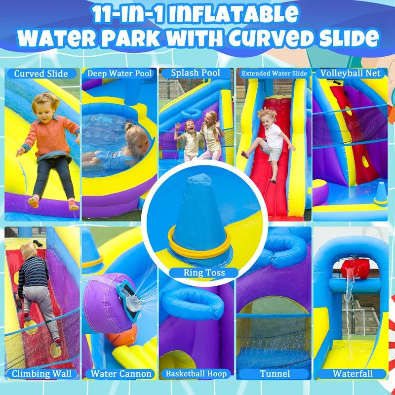 Make a big splash this summer with the ultimate backyard adventure – the 11-in-1 XL Inflatable Water Park for Kids!