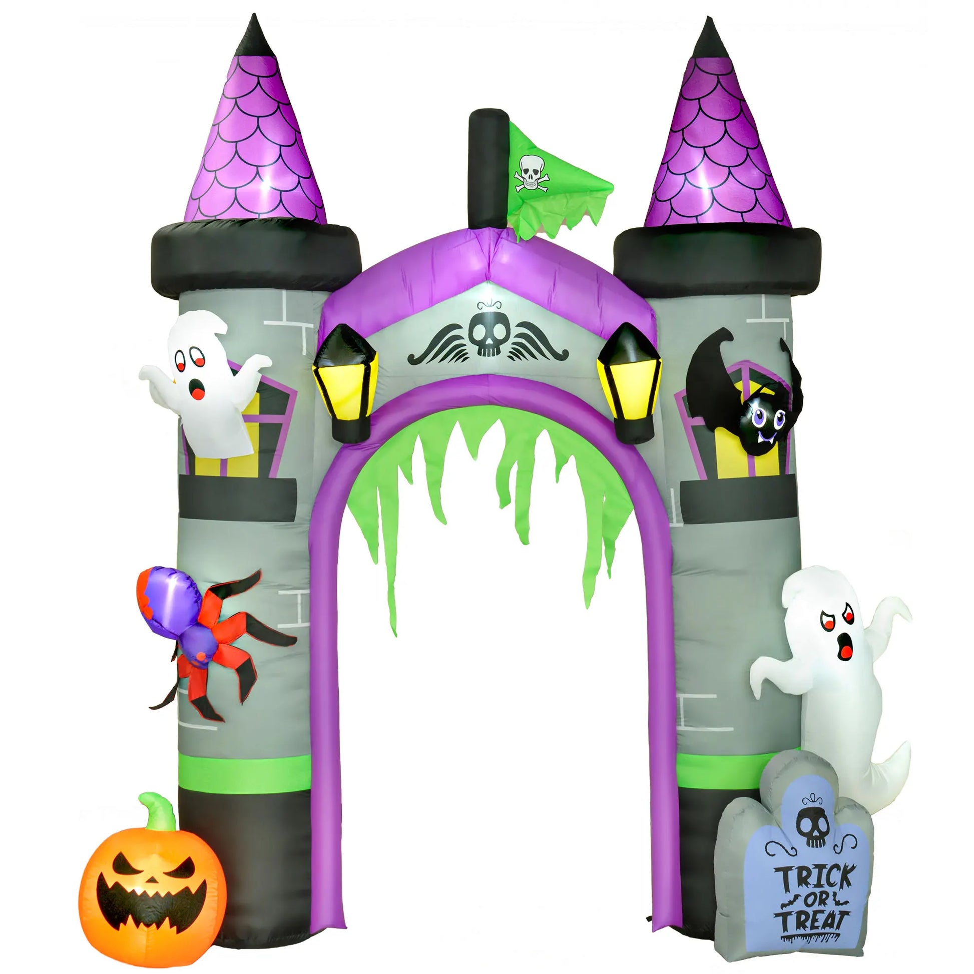 12FT Halloween inflatable archway with ghost, pumpkin, spider, and bat