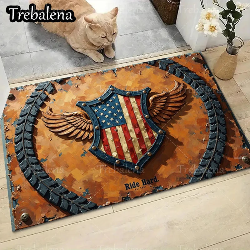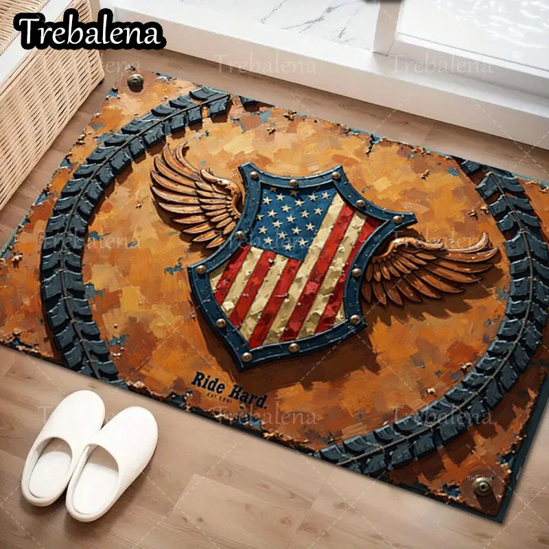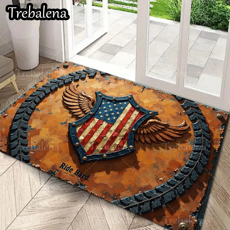 1pc Welcome Door Mat – American Flag Eagle Shield Patriotic Floor Mat