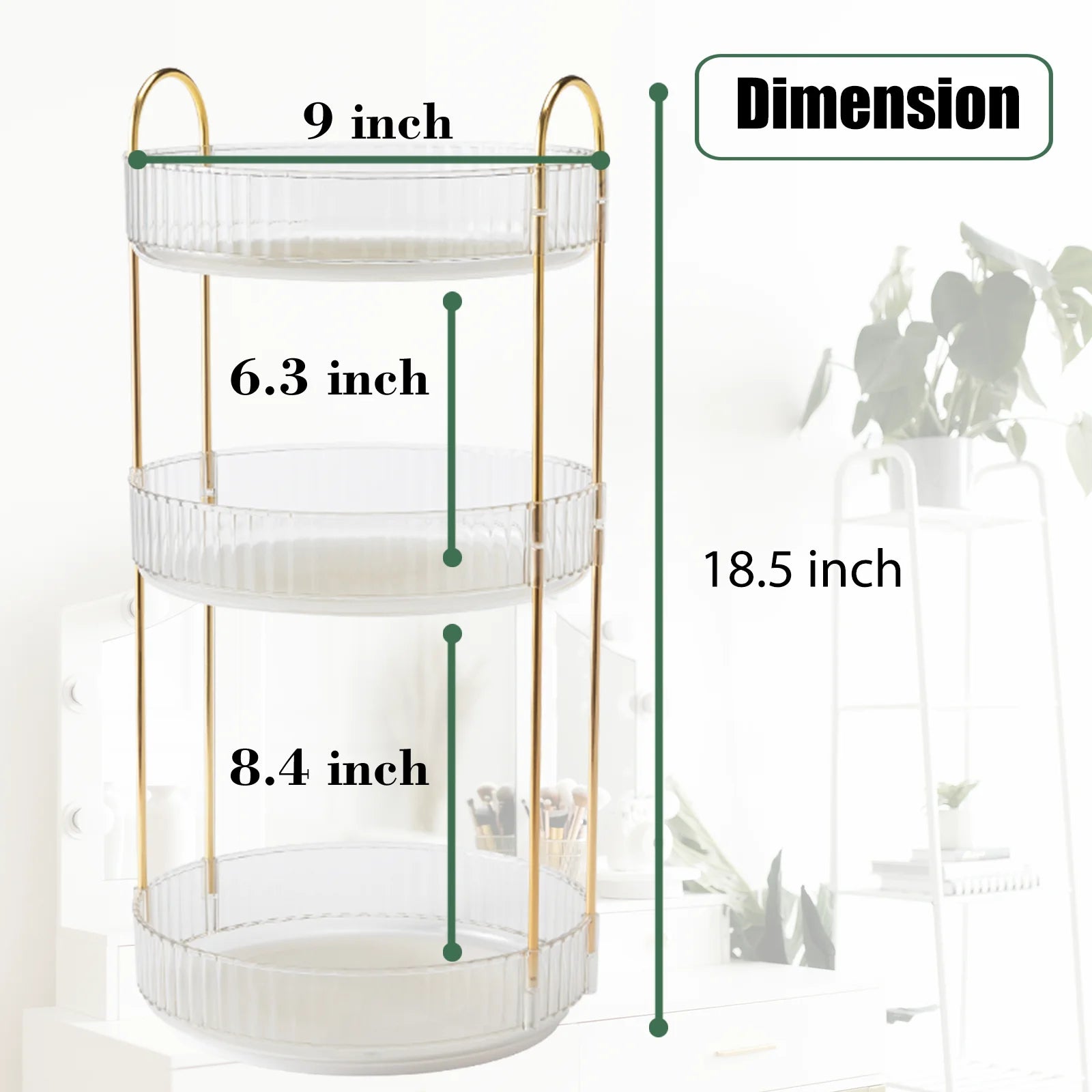 Multi-layered design holds bottles of various heights—perfect for lotions, foundations, perfumes, and more.