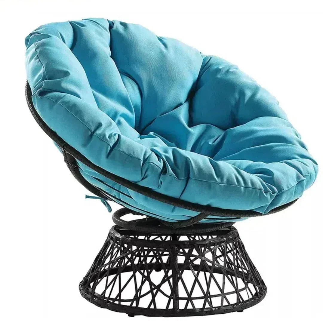 38" Swivel Wicker Papasan Chair – Ergonomic Comfort with Tufted Cushion & 360° Rotation