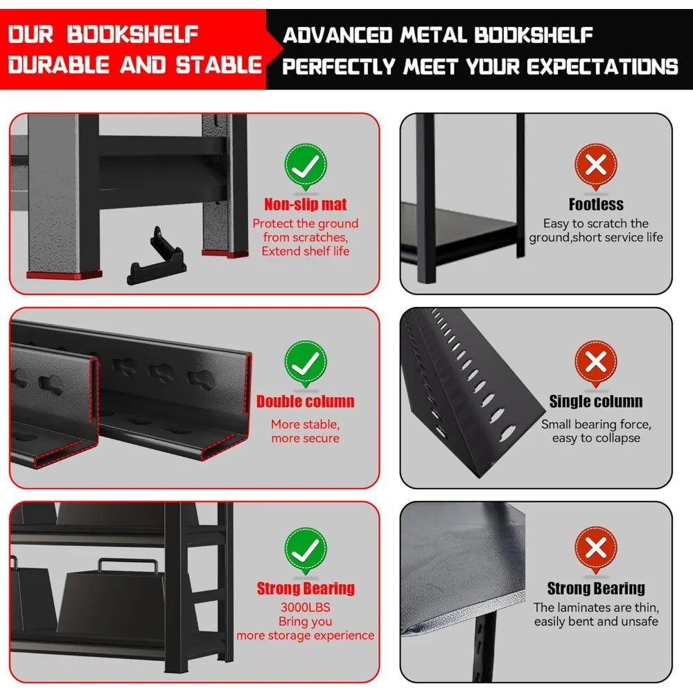 Tackle your toughest storage challenges with confidence using the 5-Tier Heavy Duty Metal Adjustable Bookshelves – strong, smart, and built to last.