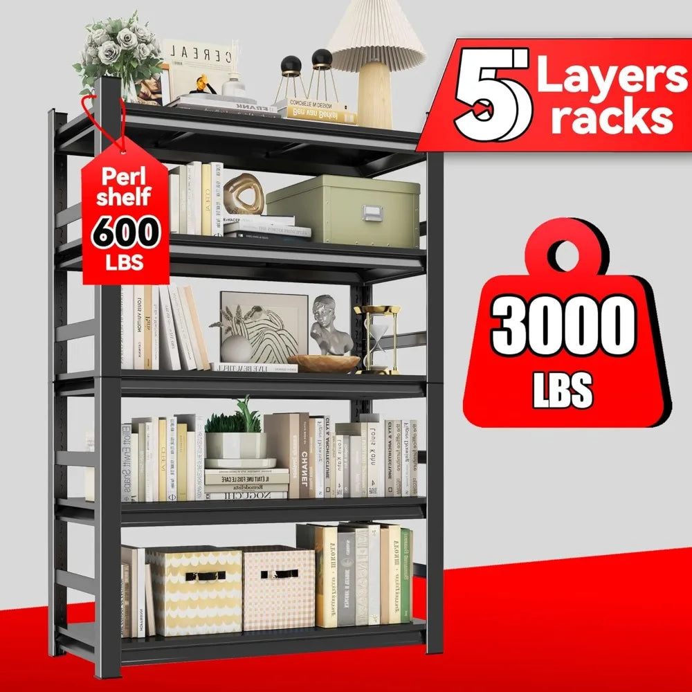 Each of the five adjustable shelves can be customized to fit your needs, making it ideal for garages, offices, kitchens, warehouses, or home libraries. The open design ensures easy access, while its heavy-duty weight capacity provides dependable support for even your bulkiest items.