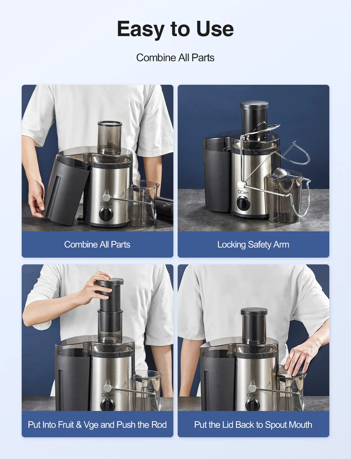 Built with a high-efficiency 500-watt motor, this juicer quickly extracts juice from a wide variety of fruits and vegetables—whether it’s crisp apples, leafy greens, or tough root veggies like carrots and beets. The 3-inch wide mouth feed chute allows you to insert larger pieces or even whole fruits, reducing prep time and making juicing faster and easier than ever.