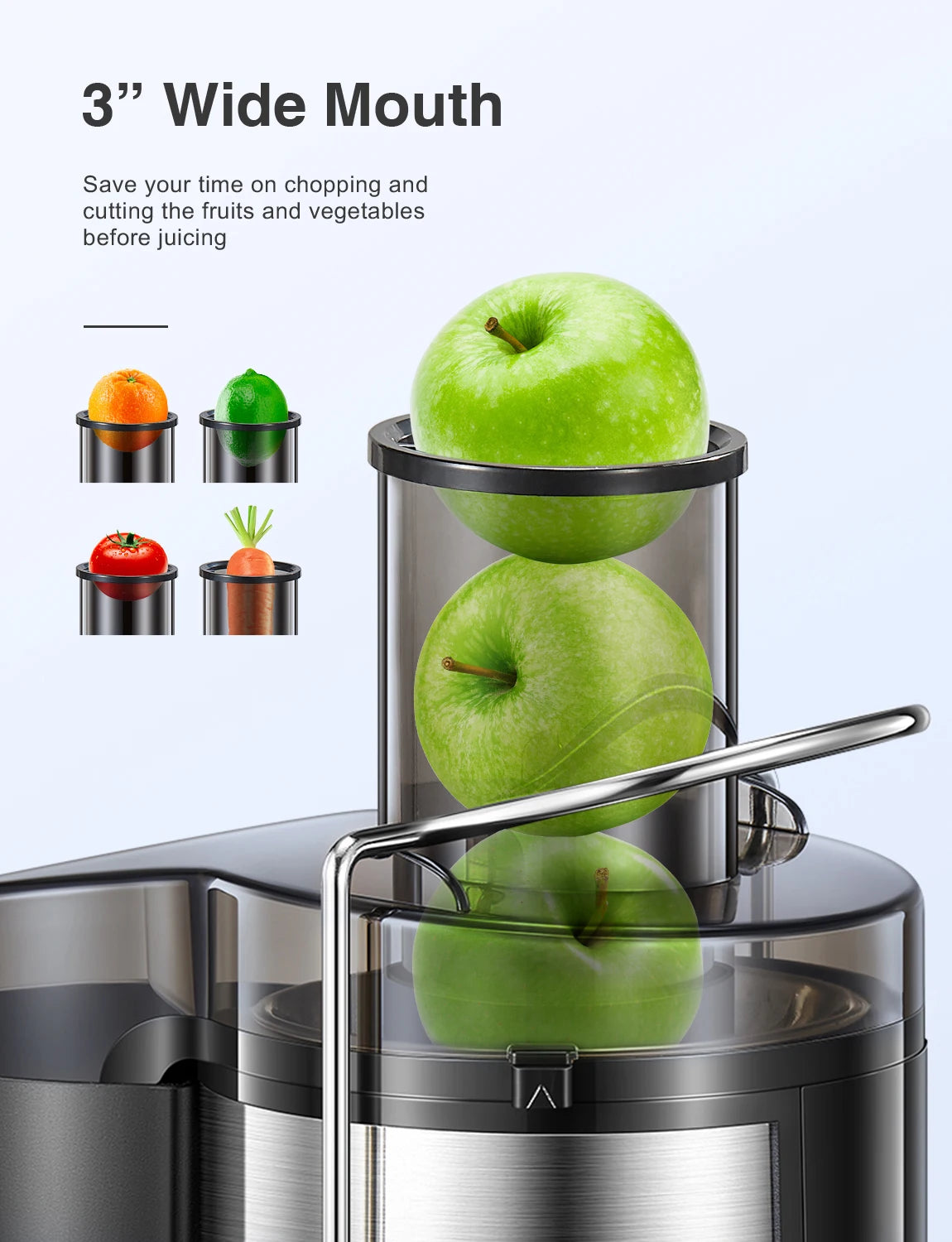 500W Centrifugal Juicer Machine – Stainless Steel Juice Extractor with 3” Wide Mouth Feed Chute, Easy to Clean, for Fruits & Vegetables