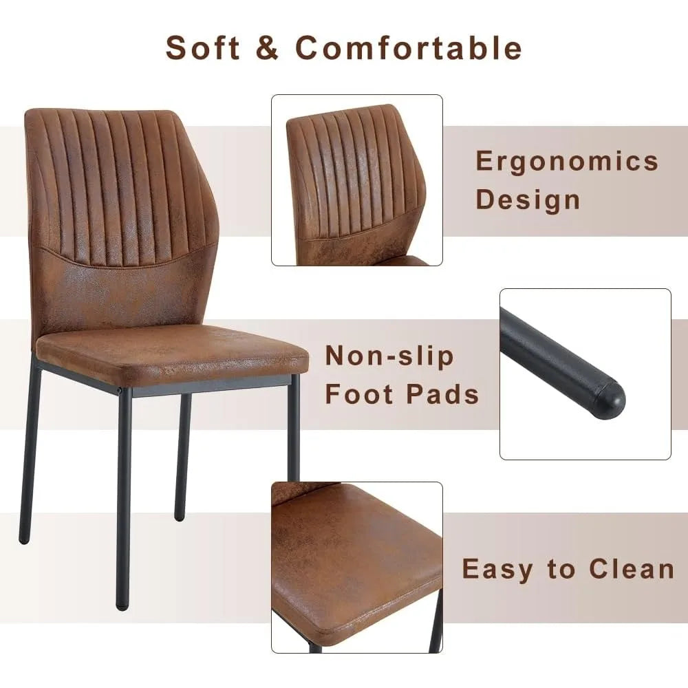 Elevate your dining experience with this 64.5" Modern Farmhouse Dining Table Set for 6, blending rustic charm with a sleek contemporary twist. The distinctive pedestal legs feature built-in tempered glass inlays, creating a sophisticated look that enhances light and adds a sense of openness to your dining area. Crafted from high-quality engineered wood with a scratch-resistant wood veneer finish, this set is built for durability and everyday family use. Smooth, rounded corners offer added safety for homes with kids and pets, while non-slip foot pads ensure floor protection and stability. The rectangular table provides generous space for 4–6 guests—perfect for family dinners, gatherings, or celebrations. Completing the set are six faux leather padded chairs with ergonomic backrests, offering superior comfort and style whether dining or entertaining. With easy assembly and timeless design, this farmhouse dining set transforms your space into a warm and inviting centerpiece for any occasion.