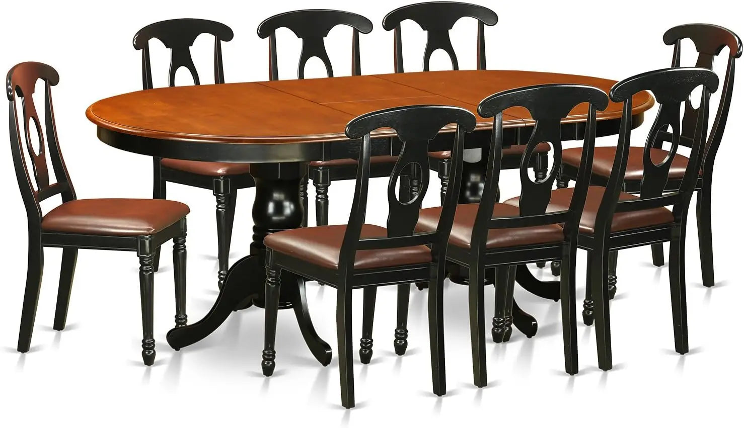 9-Piece Dining Room Set – Rectangular Dining Table with 8 Matching Wooden Chairs, Classic Family Dining Set