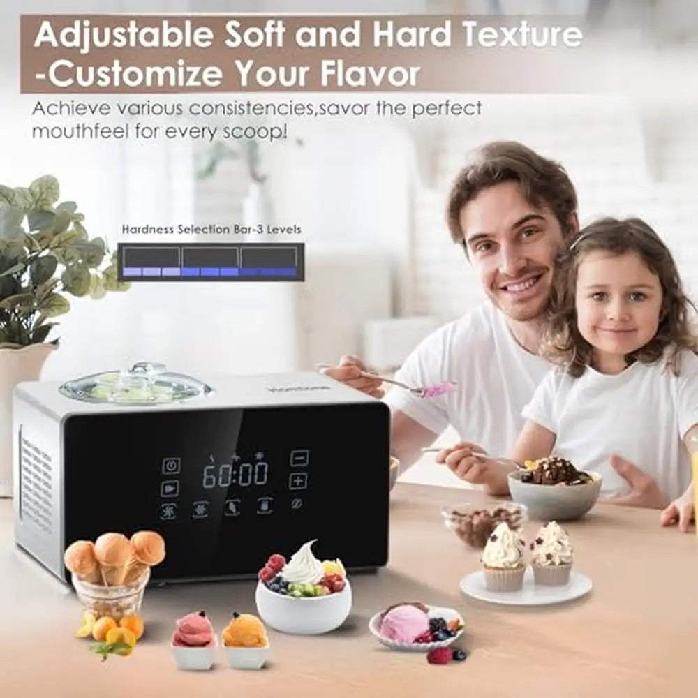 Automatic Ice Cream Maker with Compressor – 1.6 Quart Soft Serve & Gelato Machine, Touch LCD, 4 Modes, Adjustable Hardness & Speed