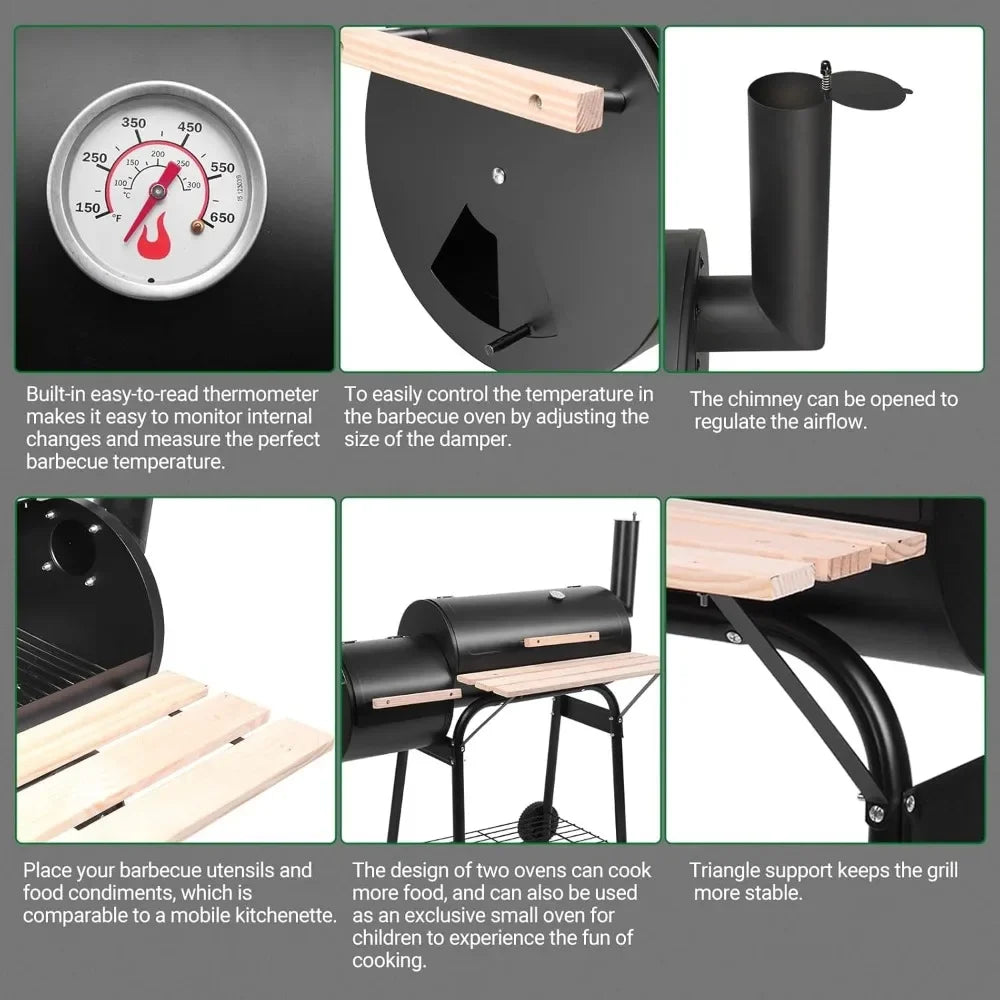 Whether you're hosting a summer party, weekend picnic, or camping trip, this all-in-one BBQ cooker delivers the perfect balance of grilling and smoking performance. The spacious cooking surface is ideal for burgers, steaks, veggies, and more, while the side fire box lets you slow-smoke meats to perfection.