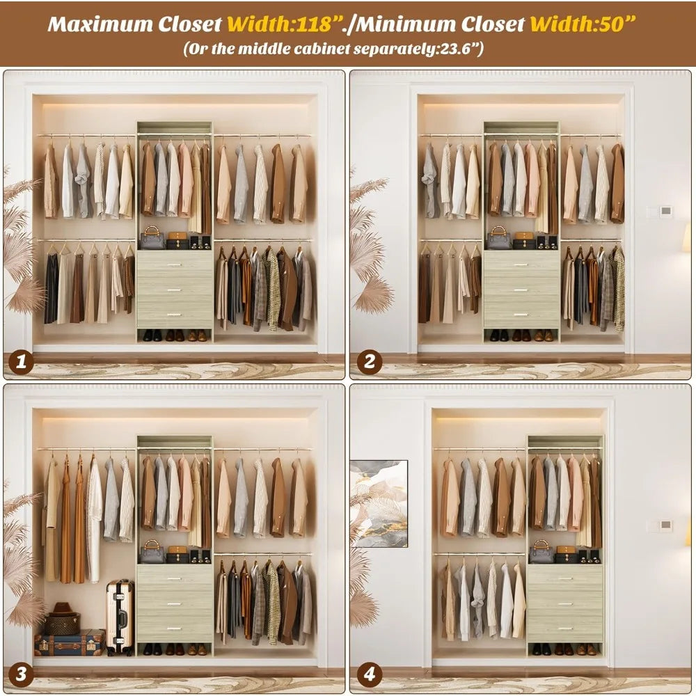 Closet Organizer System with 3 Wooden Drawers – Walk-in Wardrobe Organizer for Home Storage