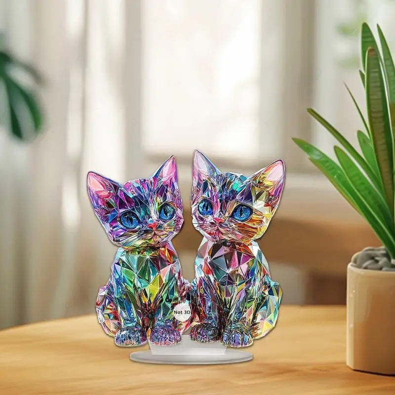 Bring art, color, and a touch of feline magic into your space with the Colorful Acrylic Cats Figurine/Sculpture – where modern design meets timeless charm.