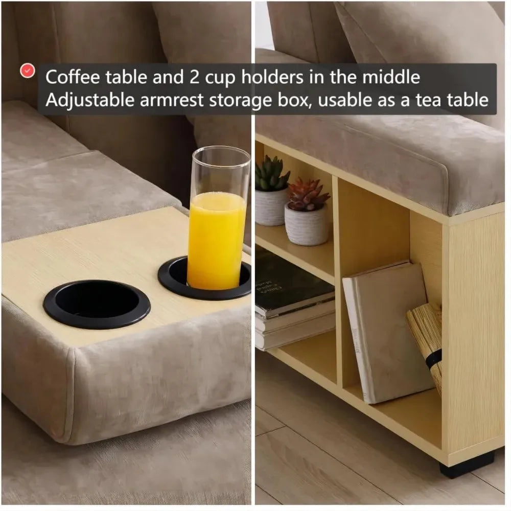 🎮 Built-in Coffee Table with Cup Holders – Functional centerpiece for movie nights or casual drinks