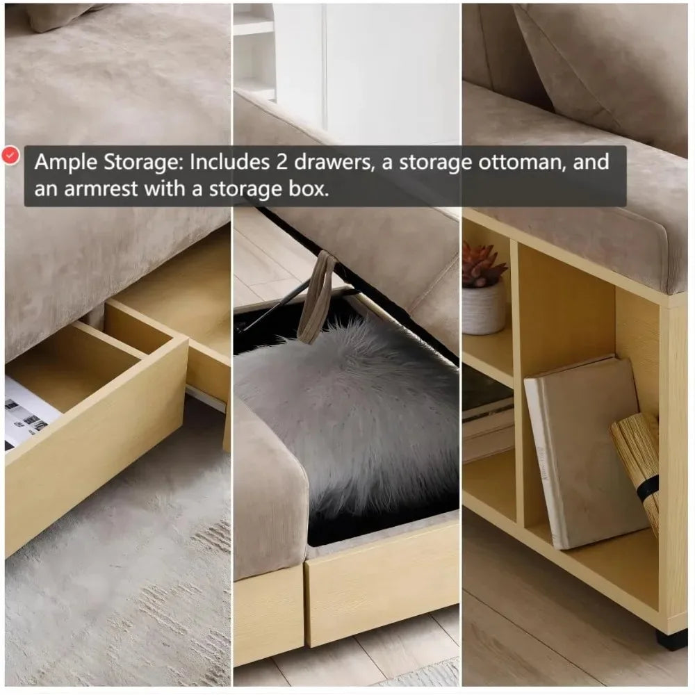 Upgrade your living room with the Convertible Sofa Bed with Storage Ottoman and Built-In Coffee Table – a smart, stylish solution for modern life.