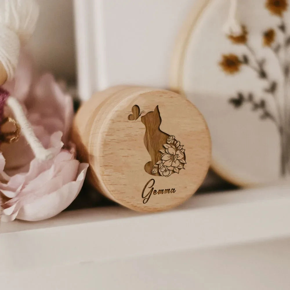 Custom Engraved Wooden Pet Hair & Tooth Keepsake Box – Cat & Butterfly Memorial Gift