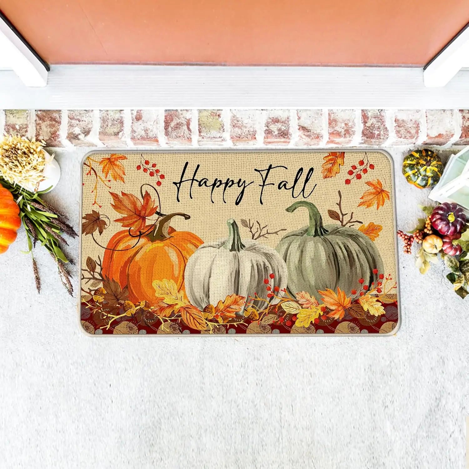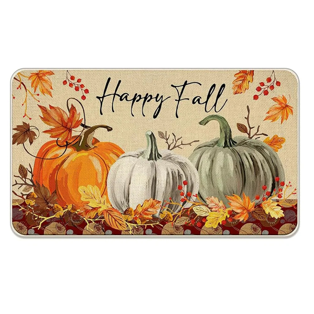 Bring the warmth of autumn into your home with this Fall Pumpkin & Maple Leaf Welcome Mat. Featuring a festive design of pumpkins, colorful leaves, and cozy fall tones, this rug is the perfect seasonal accent for kitchens, hallways, laundry rooms, and entrances. Made with a soft, durable surface and a non-slip backing, it’s both decorative and practical—helping keep your floors clean while adding a touch of autumn charm.