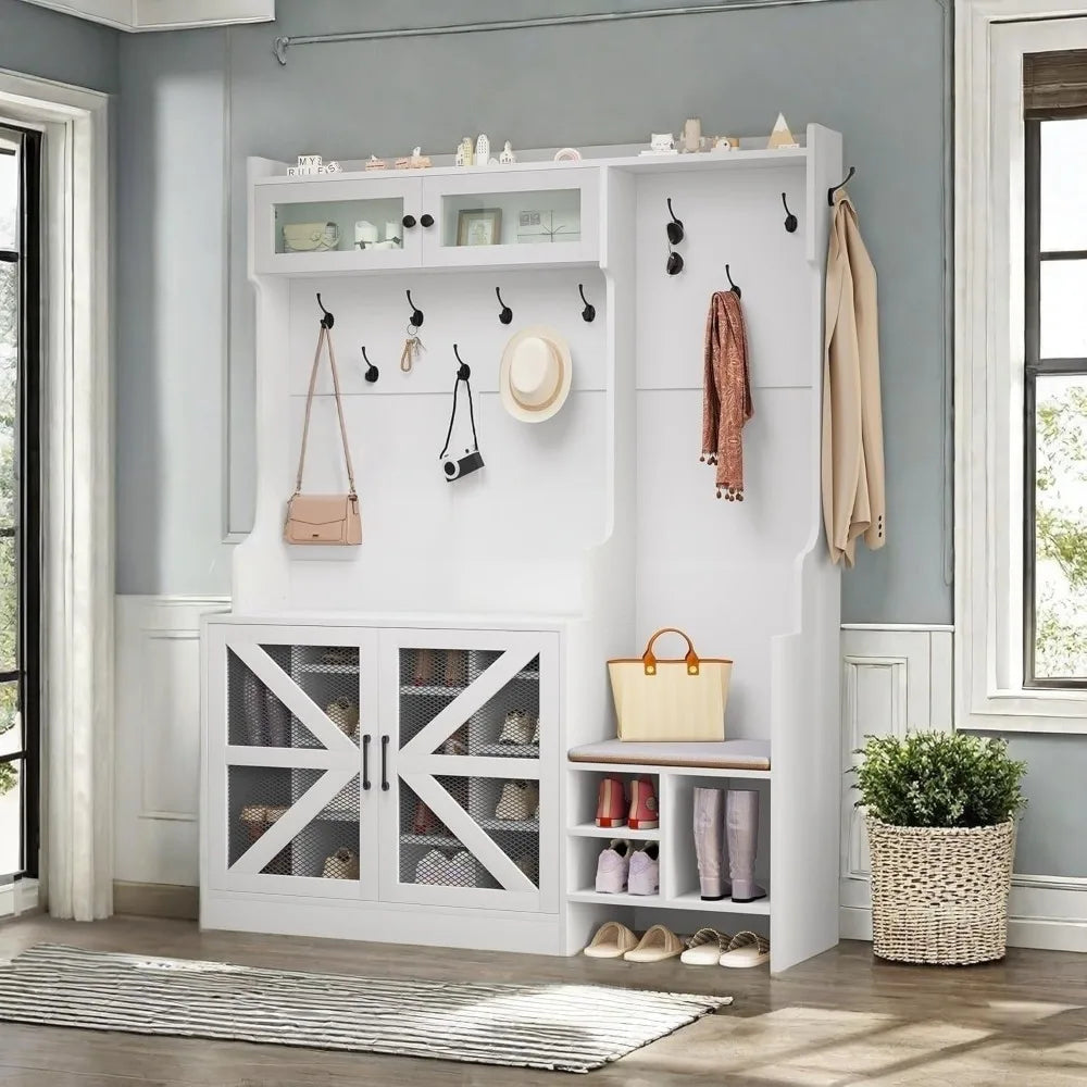 Farmhouse-Inspired Design – Classic rustic style fits perfectly in any entryway or mudroom