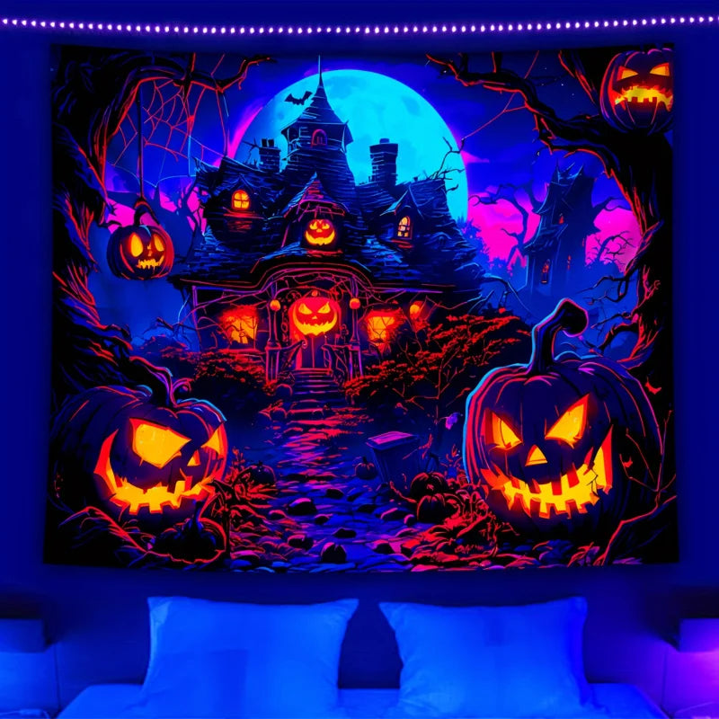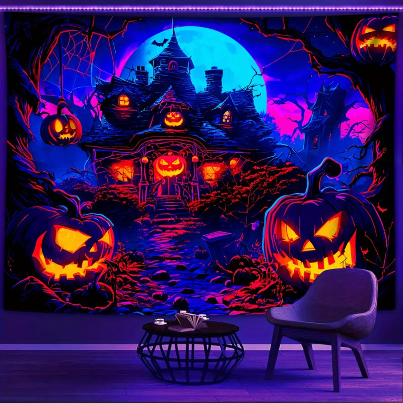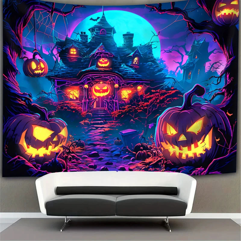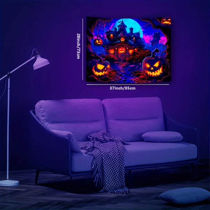Illuminate your space this Halloween with the Glow-in-the-Dark Pumpkin House Tapestry! Featuring a spooky pumpkin house design that glows after lights out, this tapestry adds a fun and eerie ambiance to home décor, bedrooms, living rooms, or party spaces. Perfect for creating a festive Halloween vibe for trick-or-treaters and guests alike.