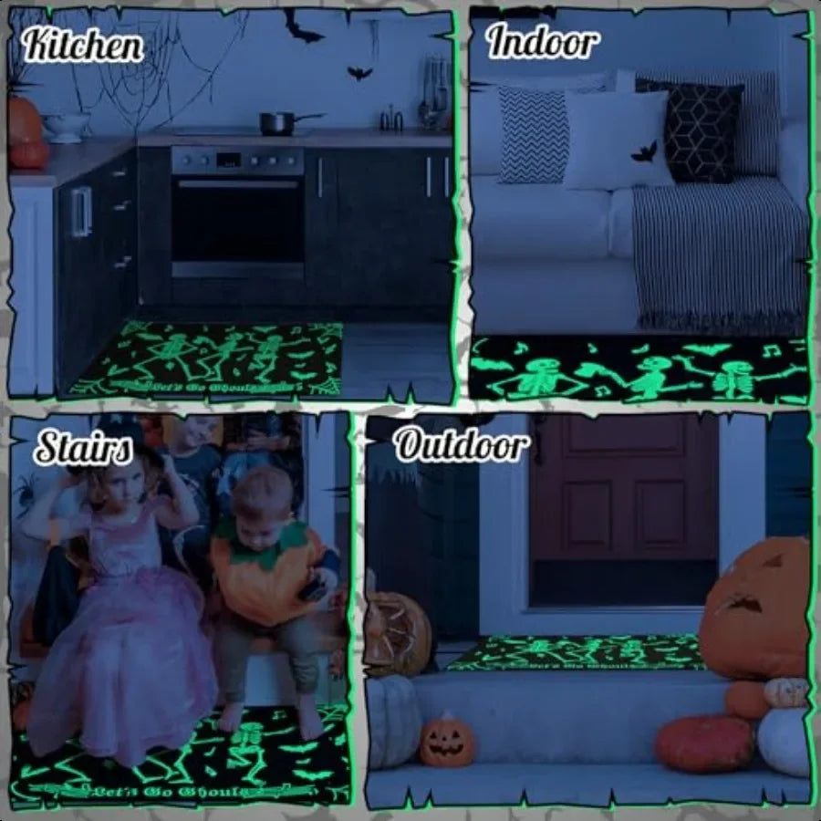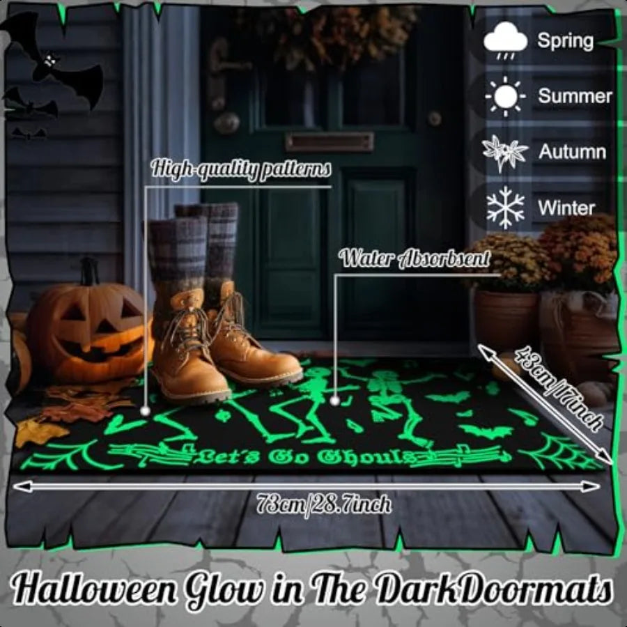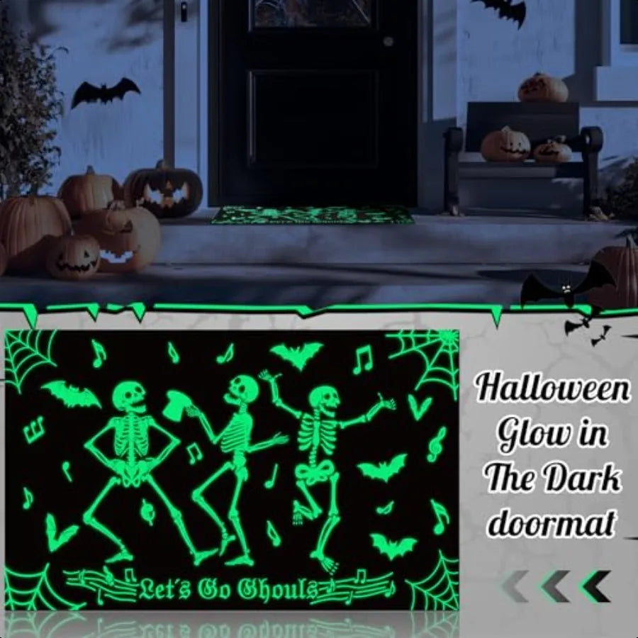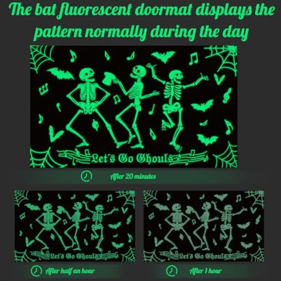 Halloween Glow in the Dark Dancing Skeleton Doormat – "Let’s Go Ghouls" Luminous Entrance Rug 17x27" Decorative Glow-in-the-Dark Kit