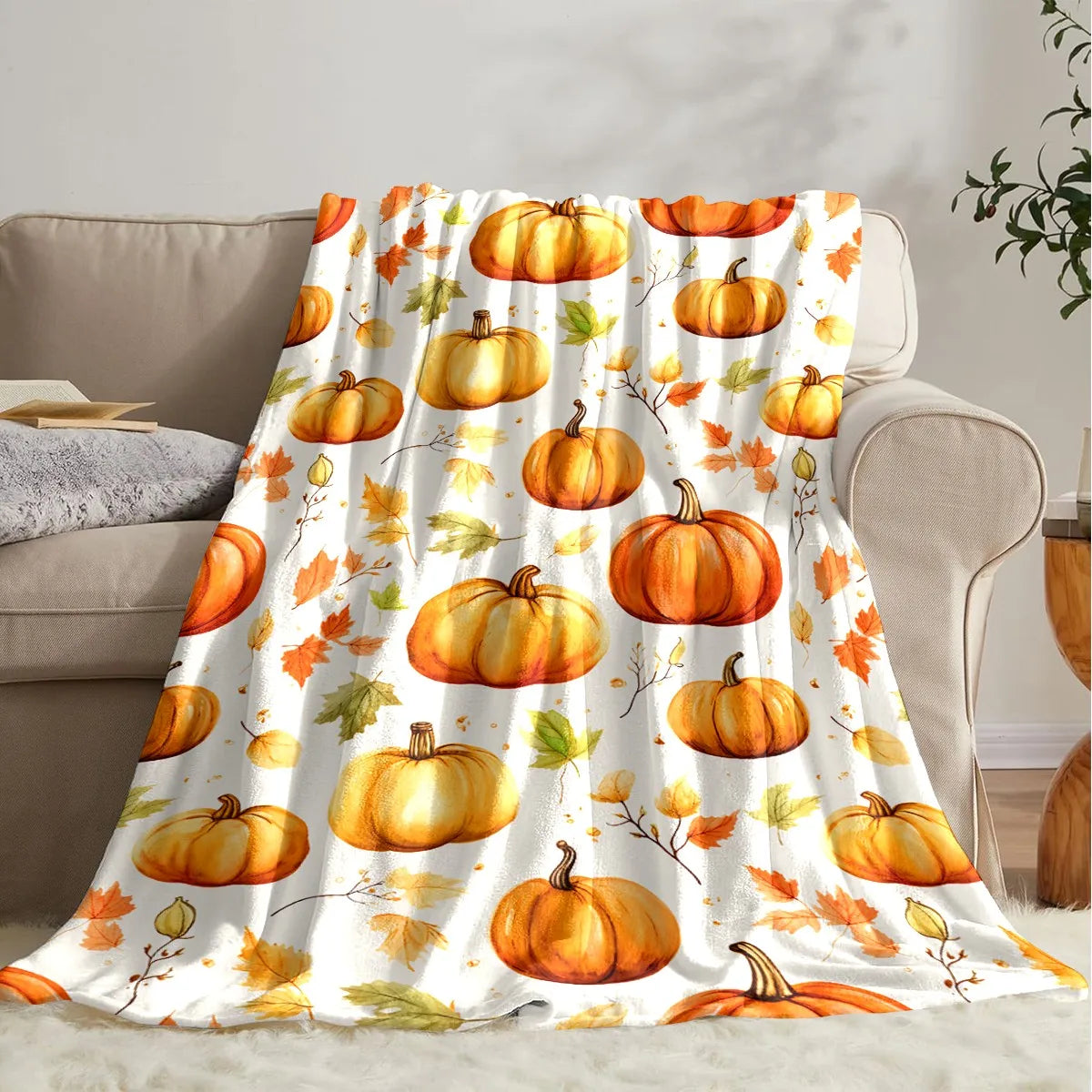 Add a festive touch to your home this autumn with our Halloween Throw Blanket! Featuring a charming pumpkin print design, this soft and cozy blanket is perfect for couch lounging, bedding, or as a decorative accent during Halloween, Thanksgiving, or fall celebrations.