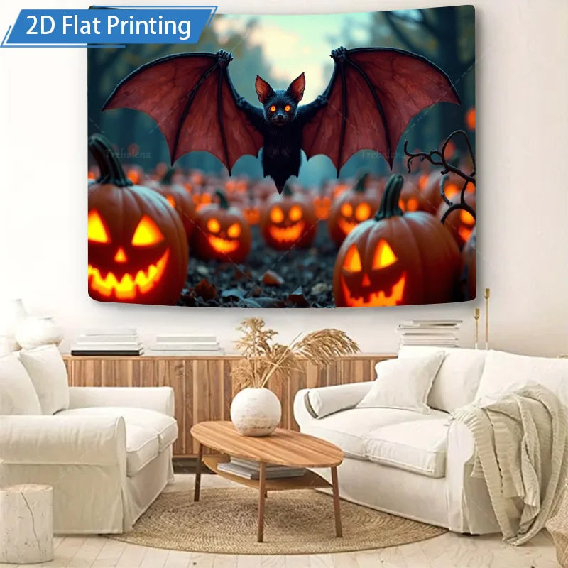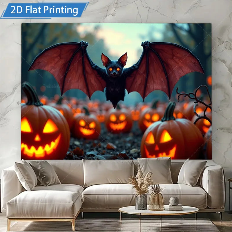 1 × Halloween Bat & Pumpkins Wall Tapestry