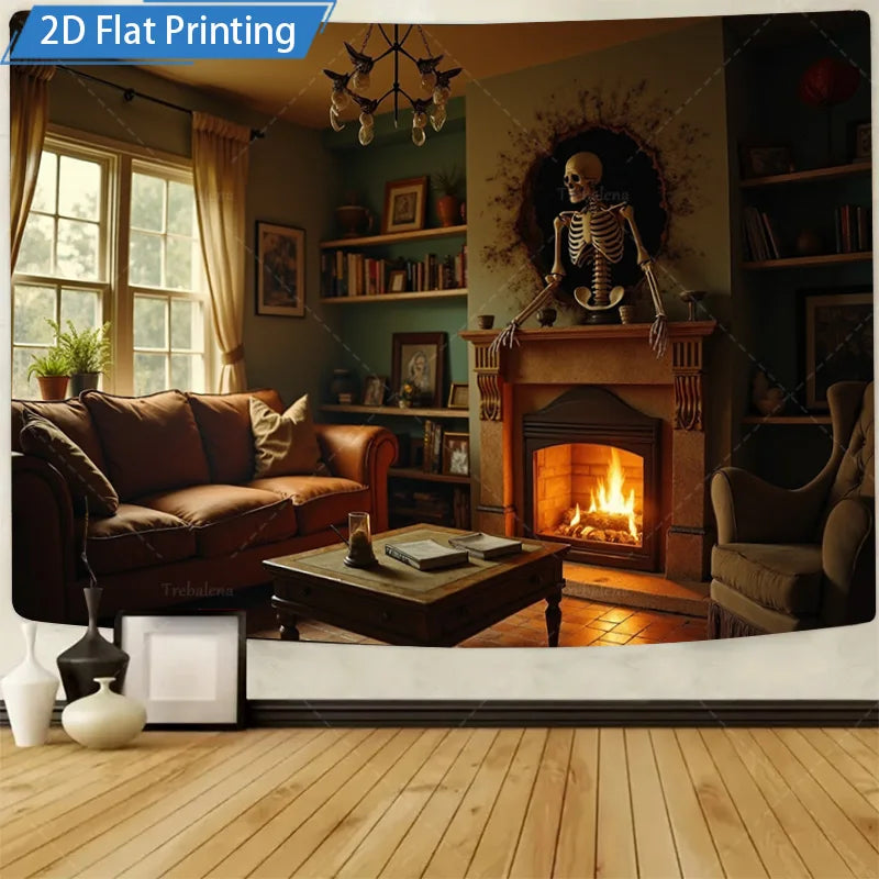 Made from lightweight, durable fabric, it’s easy to hang on any wall using hooks, nails, or adhesive strips. Ideal for adding a gothic, seasonal accent to your Halloween setup, this tapestry brings both charm and eerie elegance to your space.