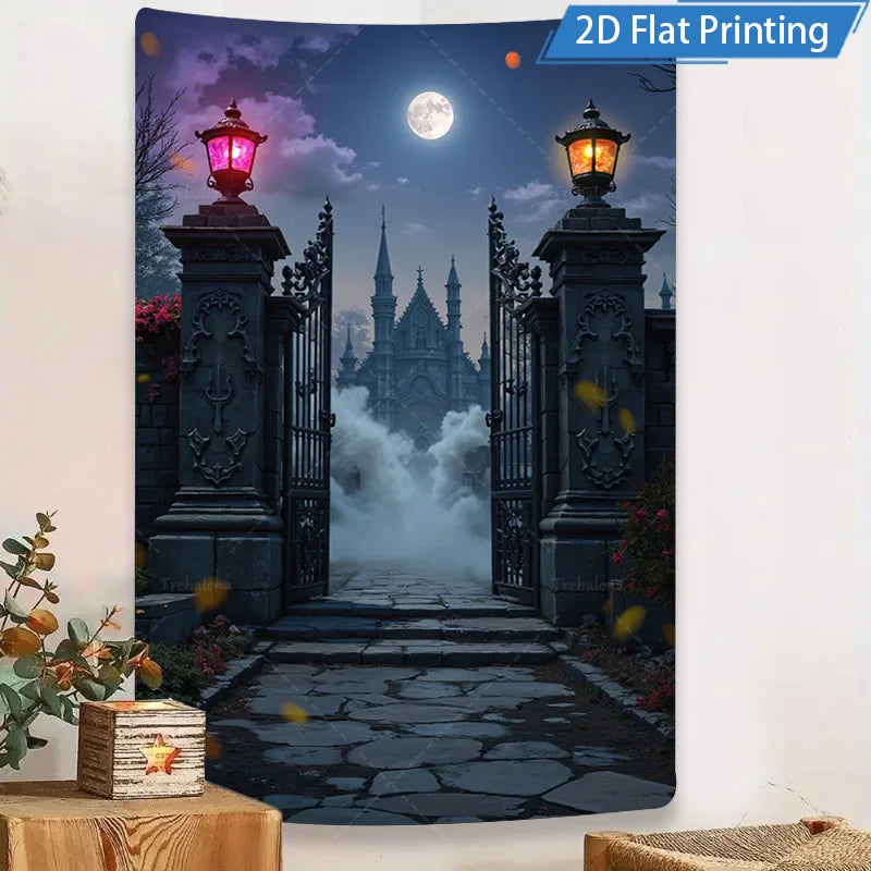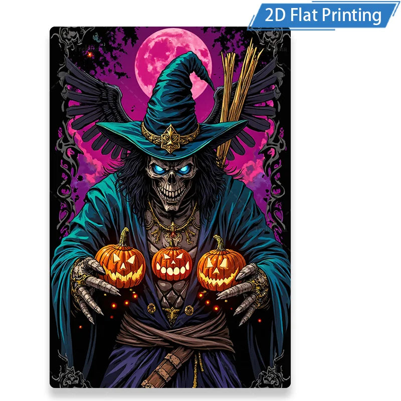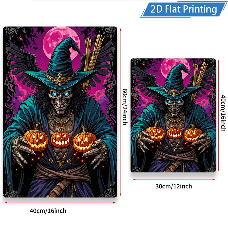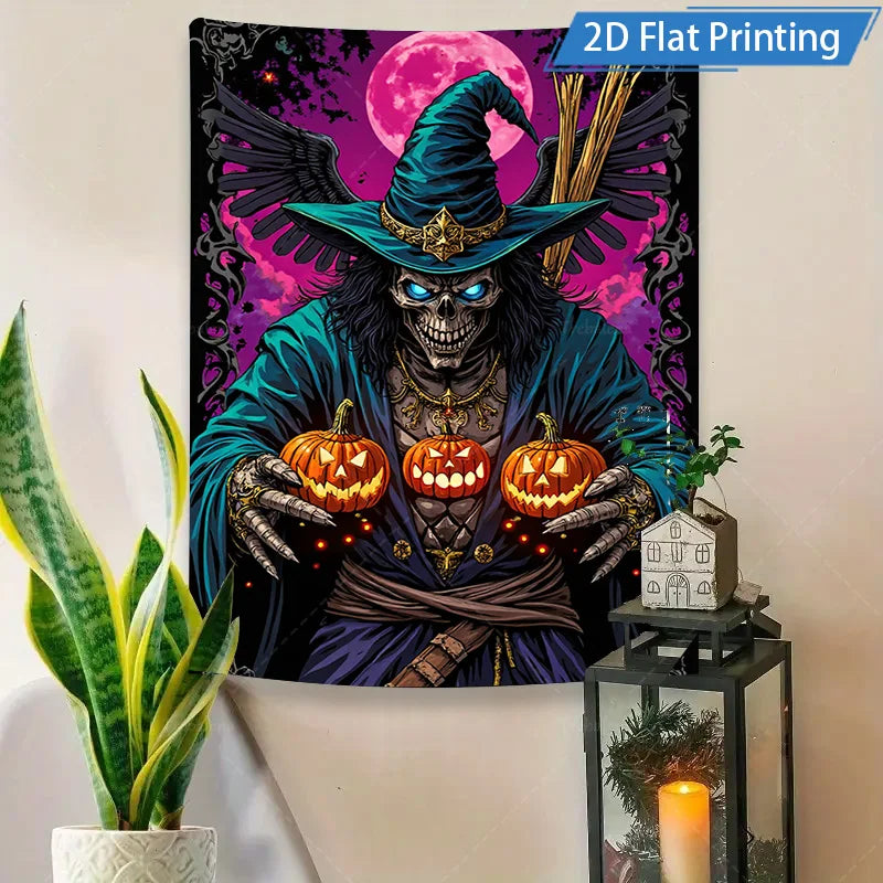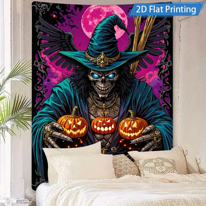 Halloween Wall Tapestry – Gothic Skull Witch with Pumpkins, Spooky Horror Décor for Home, Bedroom, or Party
