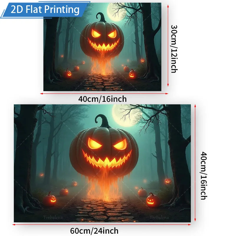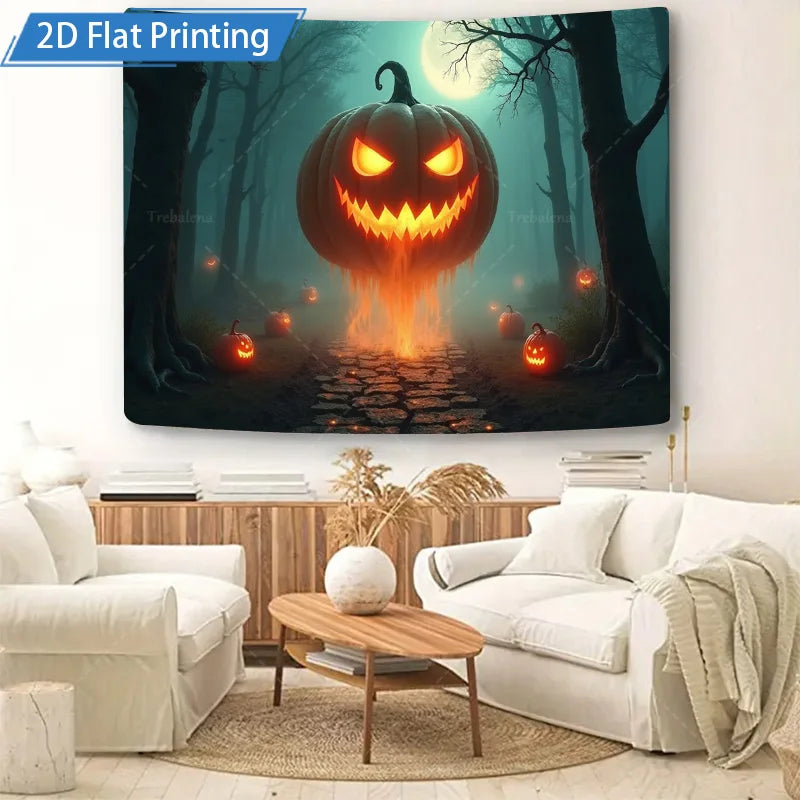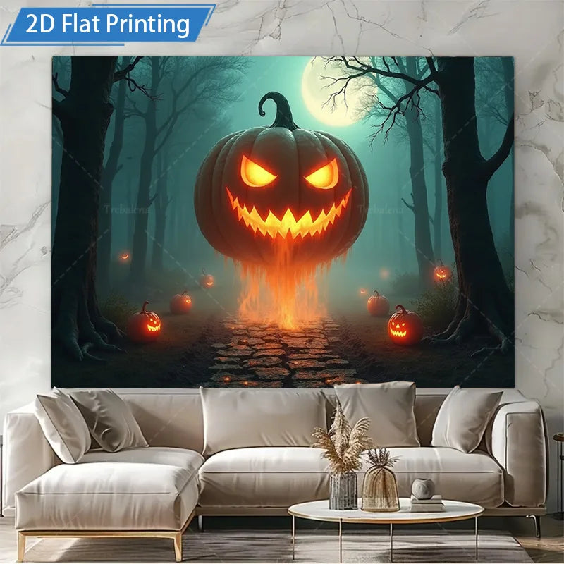 Create a hauntingly enchanting atmosphere with the Halloween Pumpkin Forest Tapestry! Featuring a moonlit forest path lined with glowing pumpkins, this tapestry adds a spooky and festive accent to any home, bedroom, living room, or Halloween party.