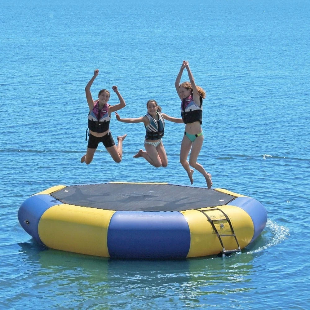 Inflatable Bongo Water Bouncer – 10FT / 13FT / 15FT / 20FT Recreational Water Trampoline with Ladder for Lake & Ocean Fun