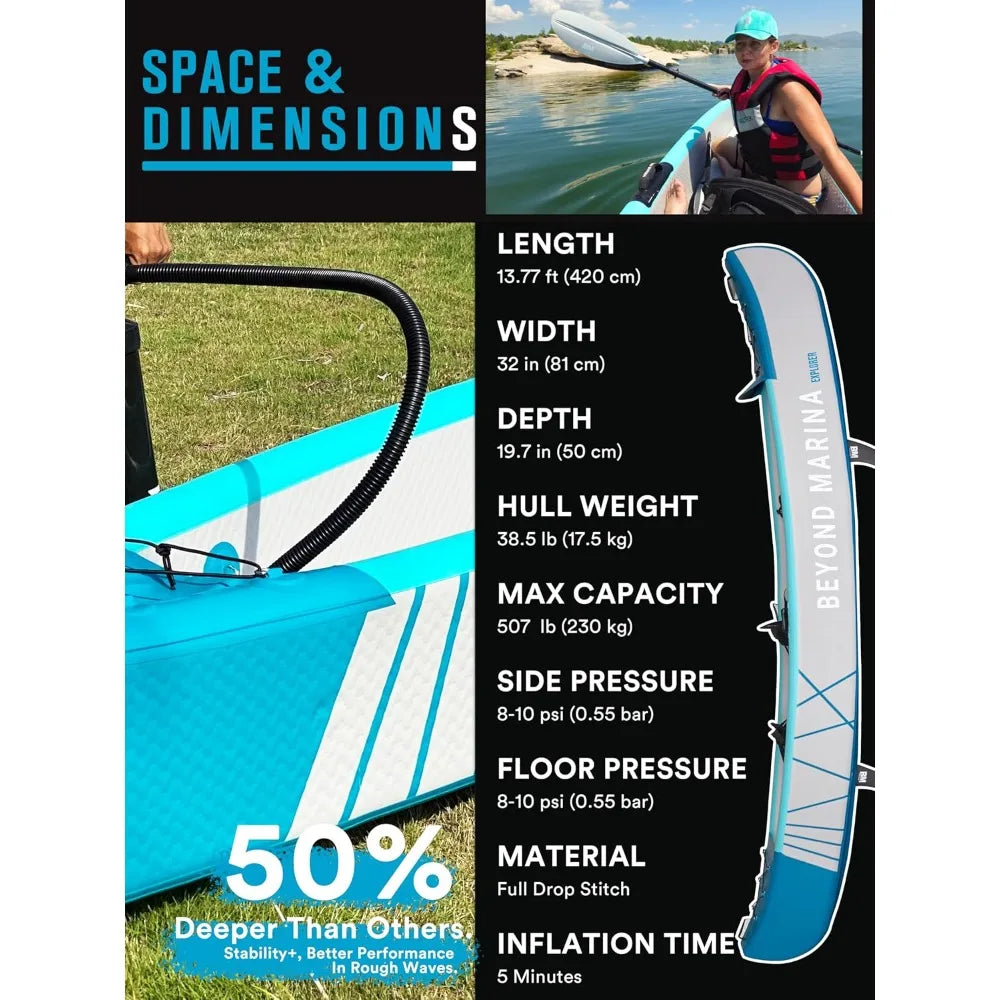 Engineered for unmatched performance, stability, and comfort, the Explorer 13.77 FT Inflatable Kayak is the ultimate tandem kayak for all your water adventures.