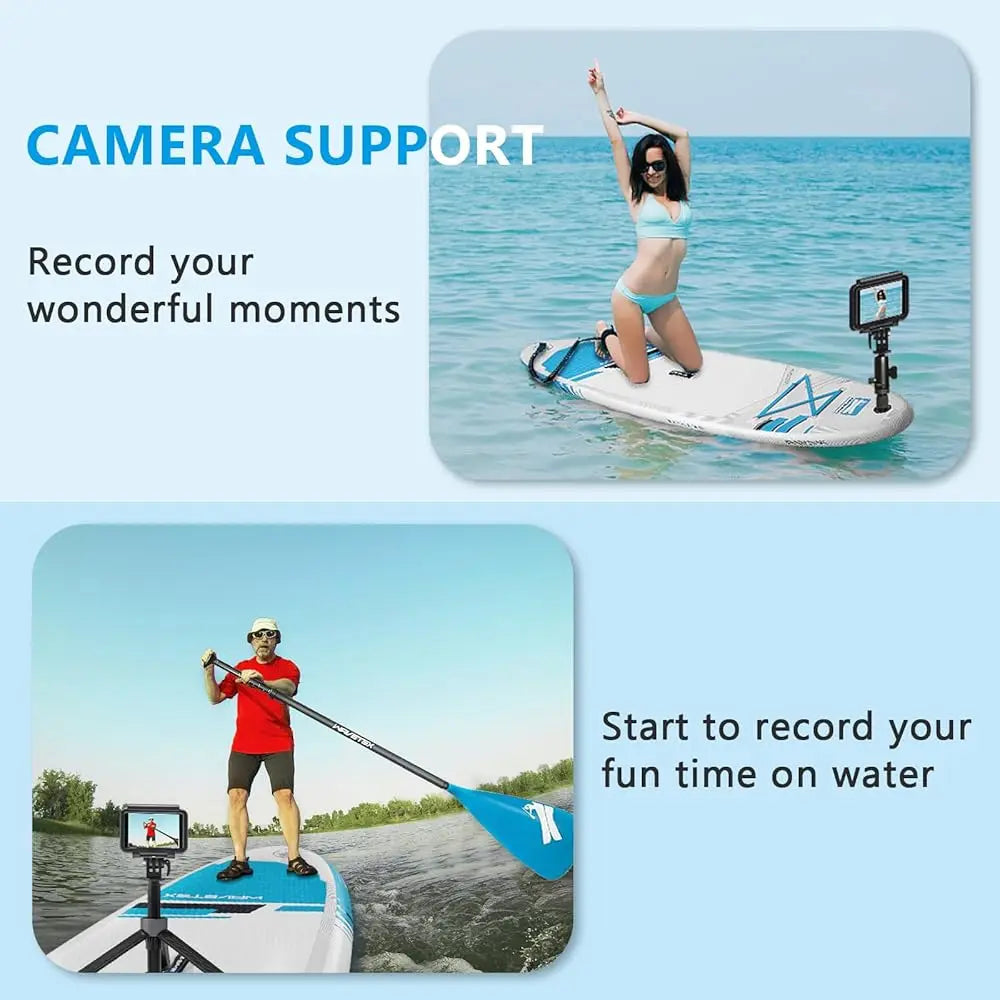 Equipped with two fixed fins and one removable center fin, you’ll enjoy better maneuverability and directional control. Plus, a built-in action camera mount lets you record your water adventures hands-free. The included carrying backpack fits the deflated board and all accessories for easy transport and storage.