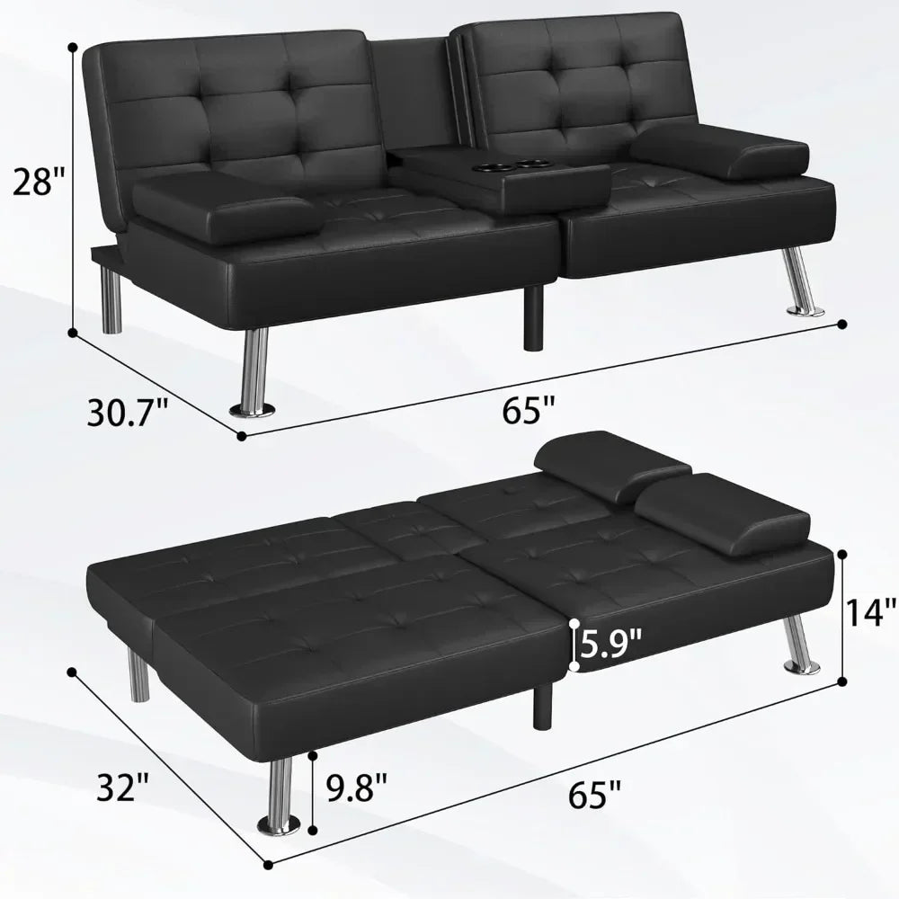 Product Name: Leather Convertible Folding Recliner with 2 Cup Holders & Removable Armrests – Versatile Comfort for Any Room