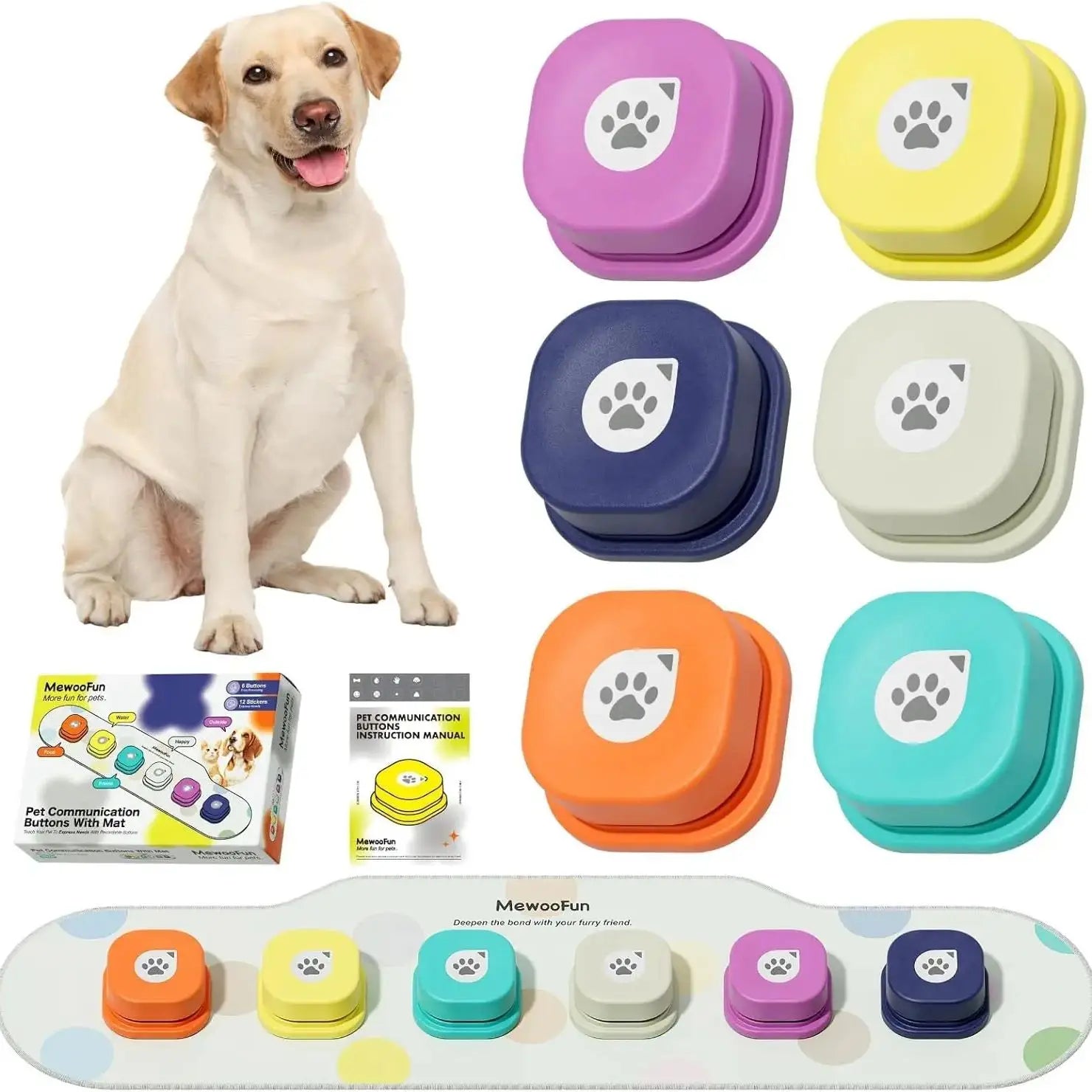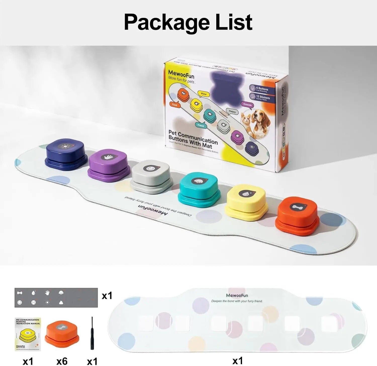 Mewoofun Dog Talking Buttons – 6-Pack Communication Training Set with Mat & Manual | Speech Buttons for Dogs to Talk, Recordable Dog Buttons for Communication