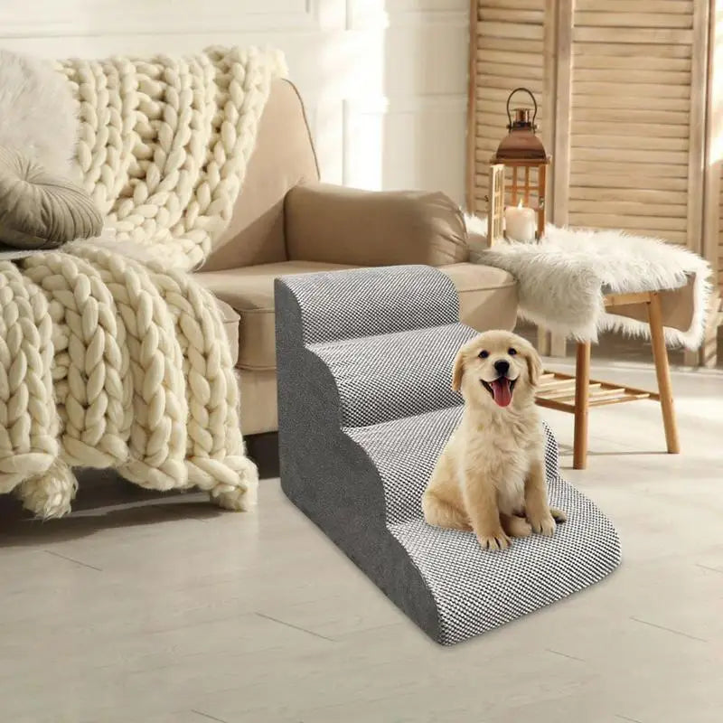 Help your furry friend climb comfortably and confidently with the Non-Slip Dog or Cat Ramp with 2/3/4 Steps – a secure and supportive solution for pets who need a little extra help getting onto beds, sofas, or other elevated surfaces. Designed for small, elderly, or mobility-challenged pets, these steps are made with high-density foam or lightweight wood/plastic (depending on model) for gentle joint support and stability.