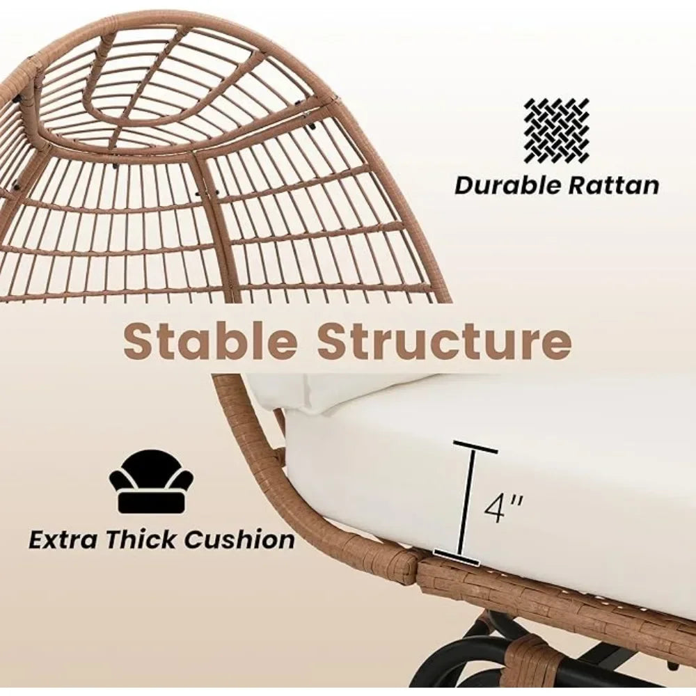 Elevate your outdoor lounging with the Outdoor Swivel Natural Rattan Egg Chair for Adults – a cozy retreat designed for both style and comfort. Crafted from hand-woven natural rattan, this chair boasts a timeless egg-shaped silhouette that cradles you in a sense of calm, while the 360° swivel base allows you to turn effortlessly in any direction.