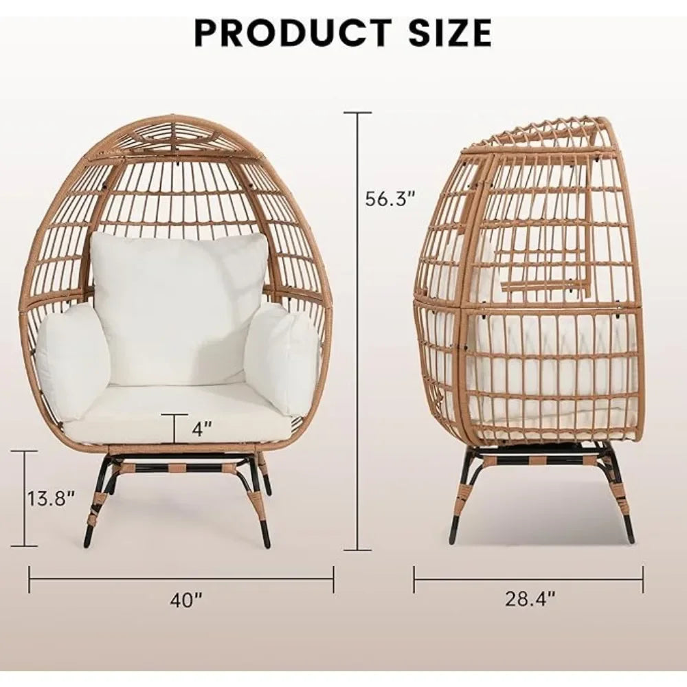Product Name: Outdoor Swivel Natural Rattan Egg Chair for Adults with Overstuffed Cushions – Relaxation with a 360° View