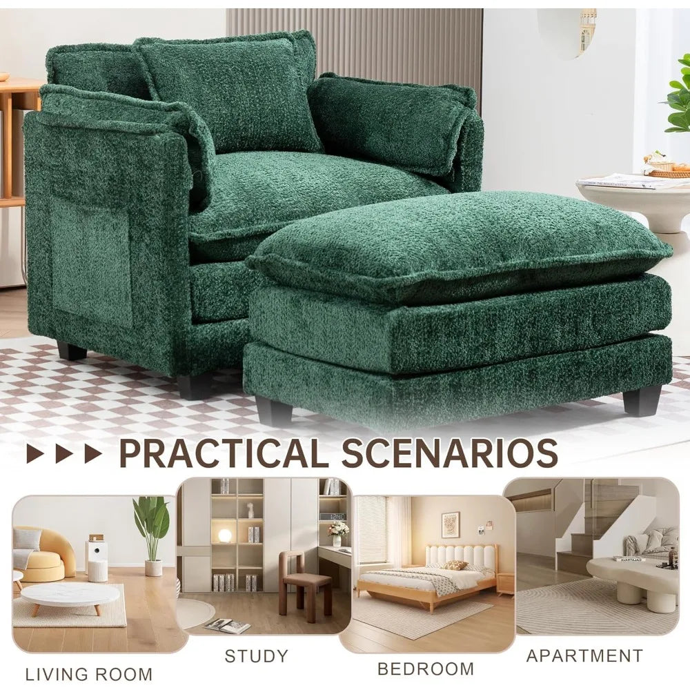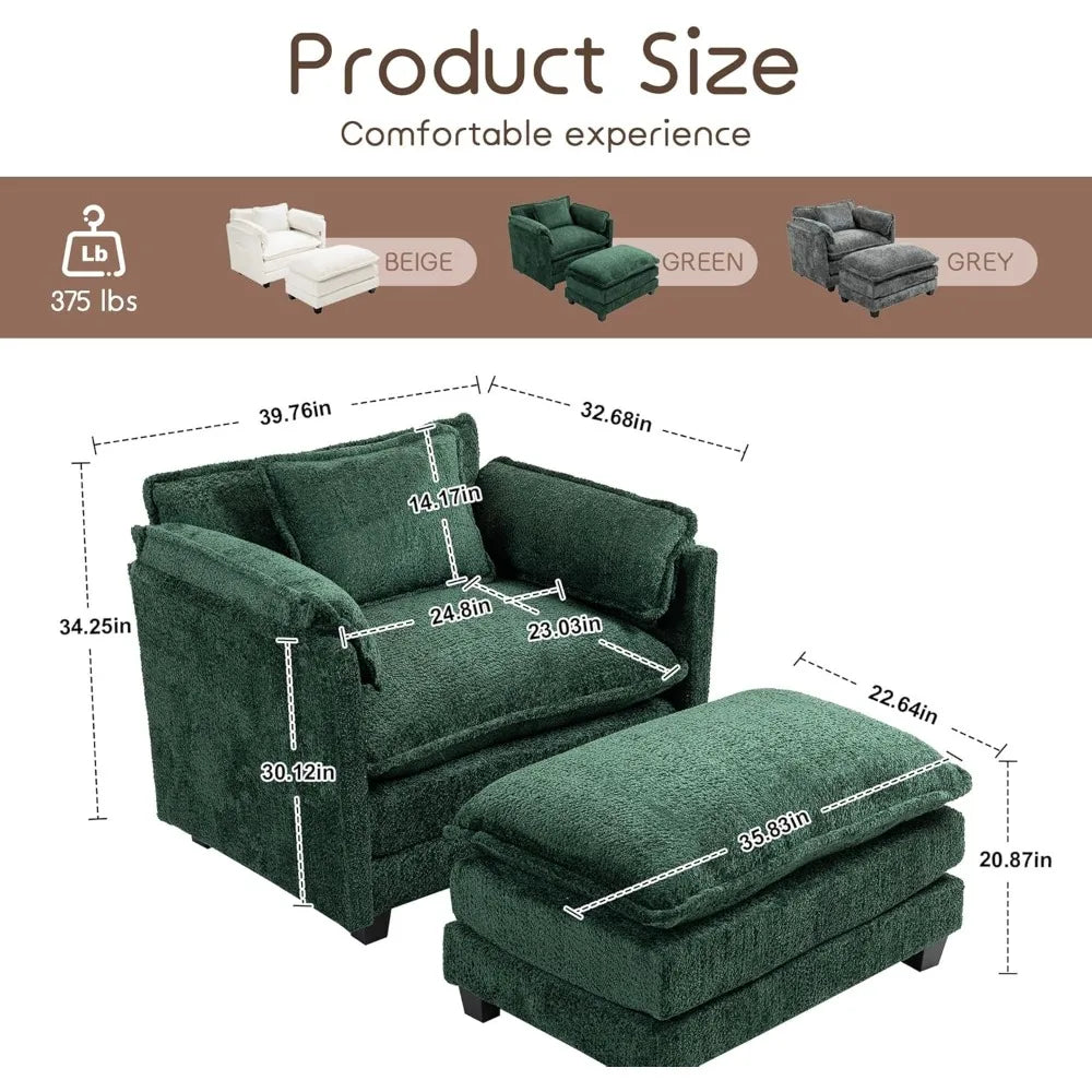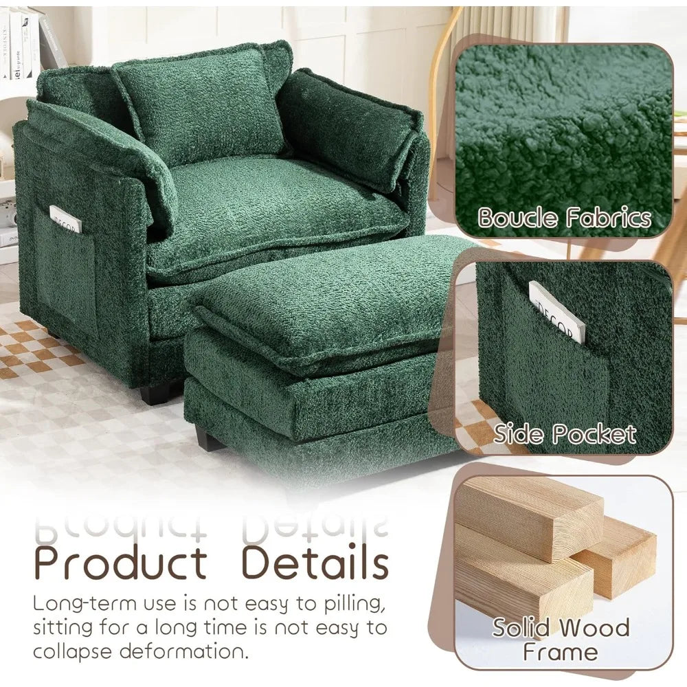 Oversized Boucle Accent Chair with Storage Ottoman – Cozy Double Cushion Reading Armchair, Deep Seating Lounge Chair for Living Room, Bedroom, or Apartment