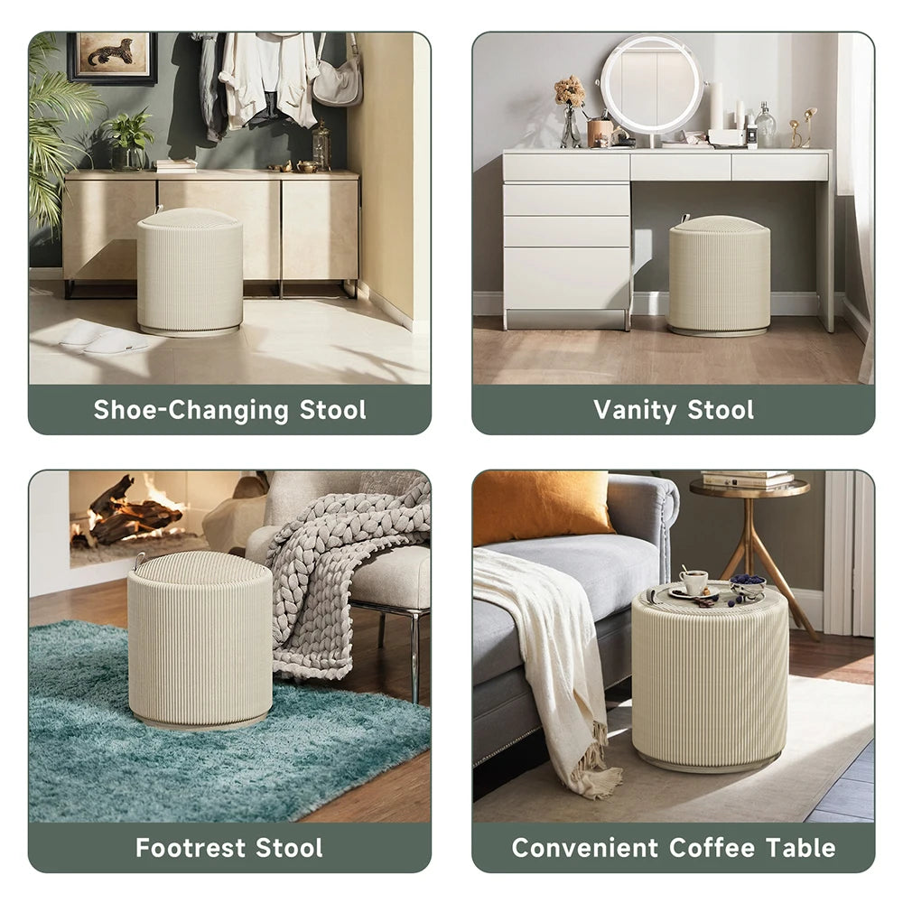 Add a stylish and functional touch to any room with the Round Storage Stool / Ottoman Organizer Chair – a versatile piece that doubles as a seat, footrest, and hidden storage solution. With its compact, space-saving design, this multifunctional ottoman is perfect for bedrooms, living rooms, dorms, or entryways.