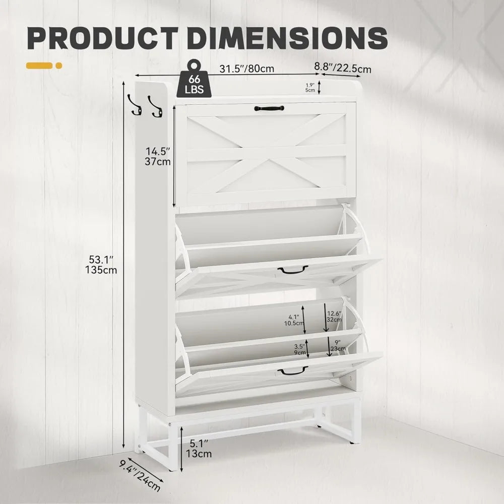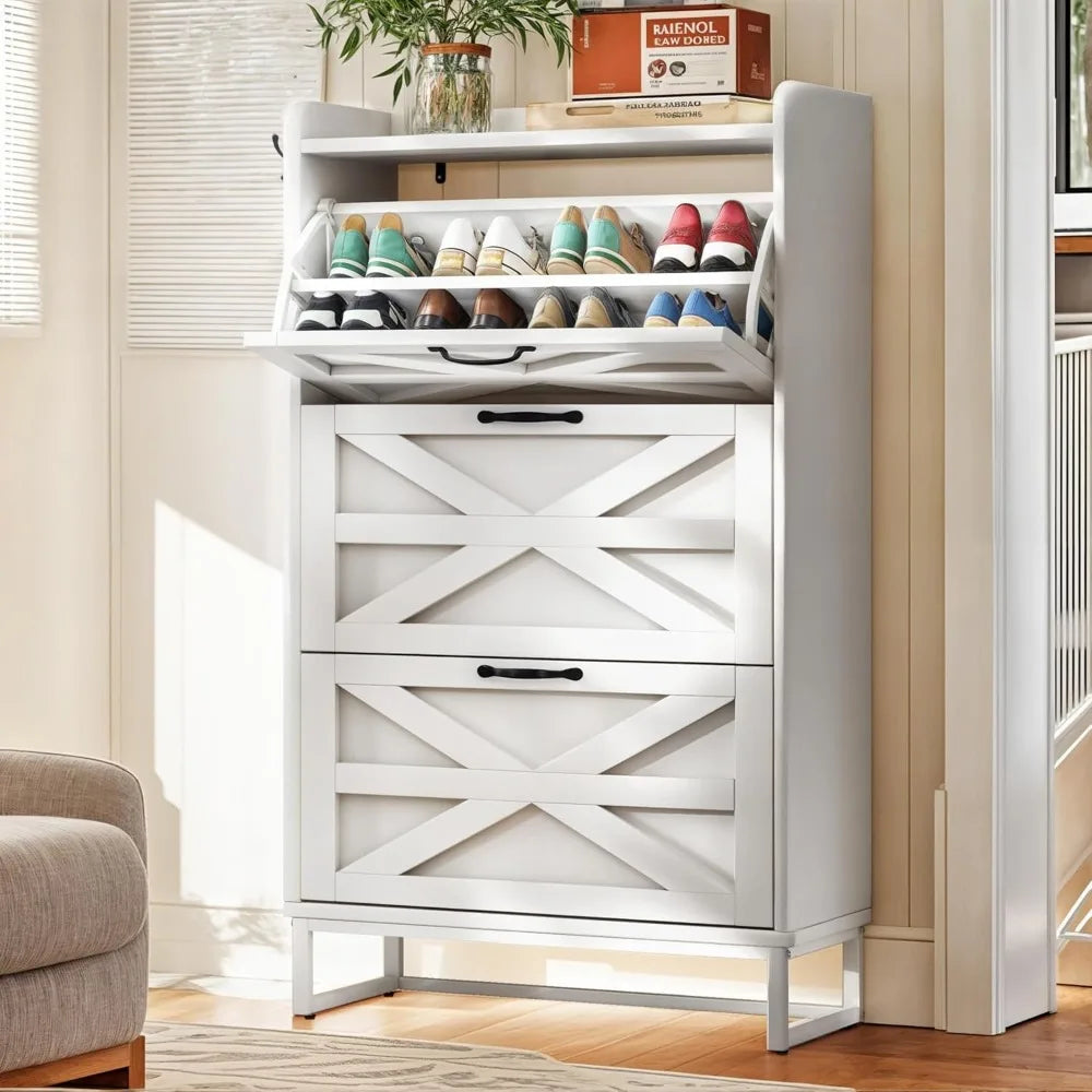 Product Name: Shoe Storage Cabinet with Flip Drawers – Space-Saving Elegance for Organized Living