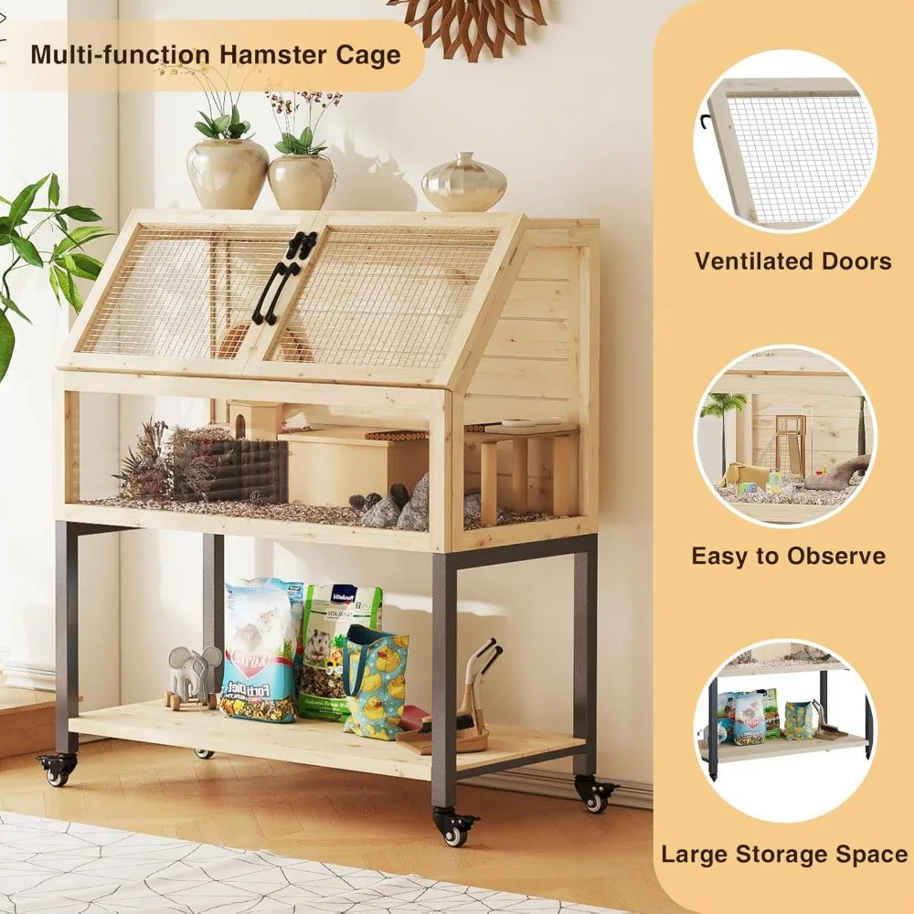 Product Name: Small Wooden Transparent Animal Cage with Storage Shelf – Stylish Comfort & Smart Organization for Small Pets