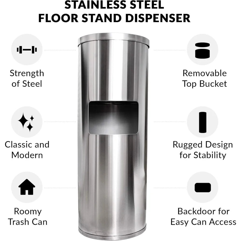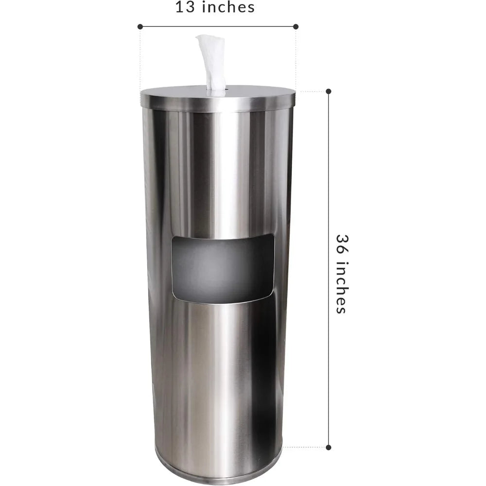 Stainless Steel Floor-Standing Wipe Dispenser with Built-In Trash Can – Fits Most Sanitizing & Disinfecting Wipe Refill Rolls
