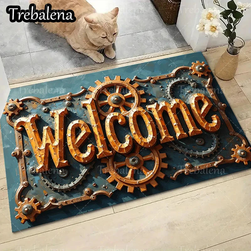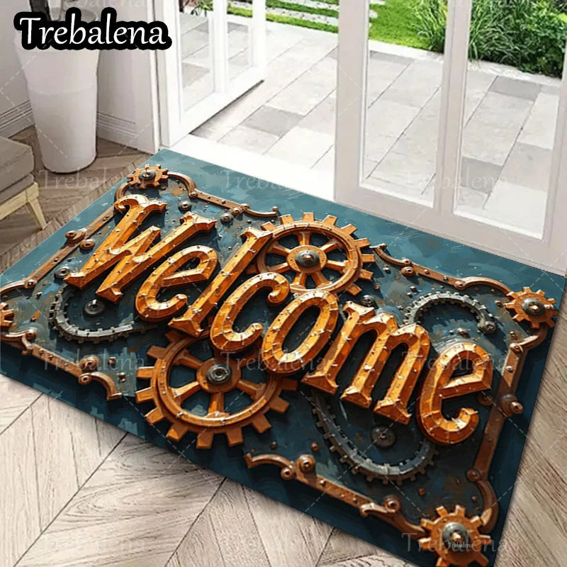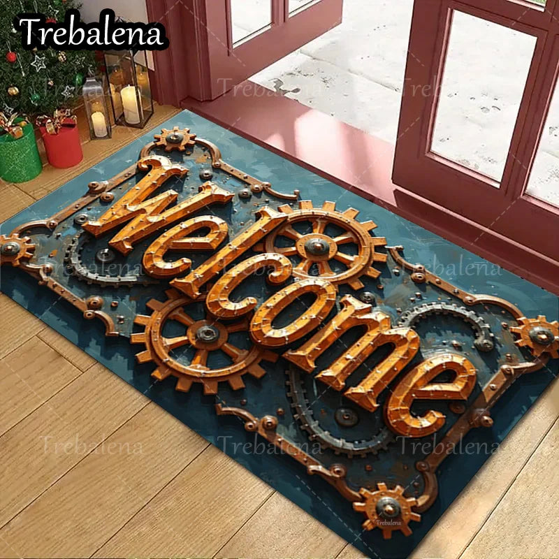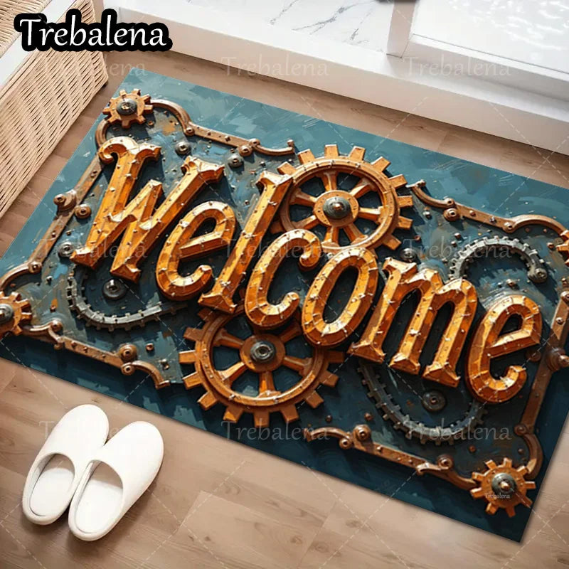 Steampunk Welcome Door Mat – Gear Design Entryway Rug for Home Décor