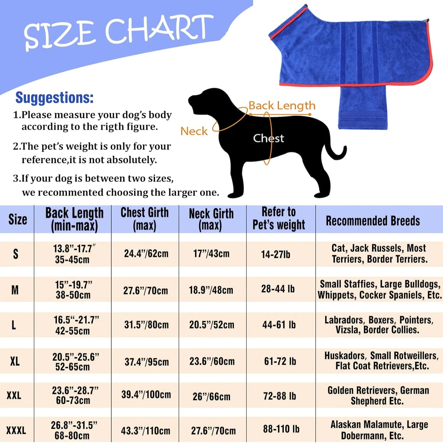 Product Name: Super Absorbent Microfiber Pet Towel/Robe – Quick-Dry Comfort with Adjustable Collar & Belly Strap