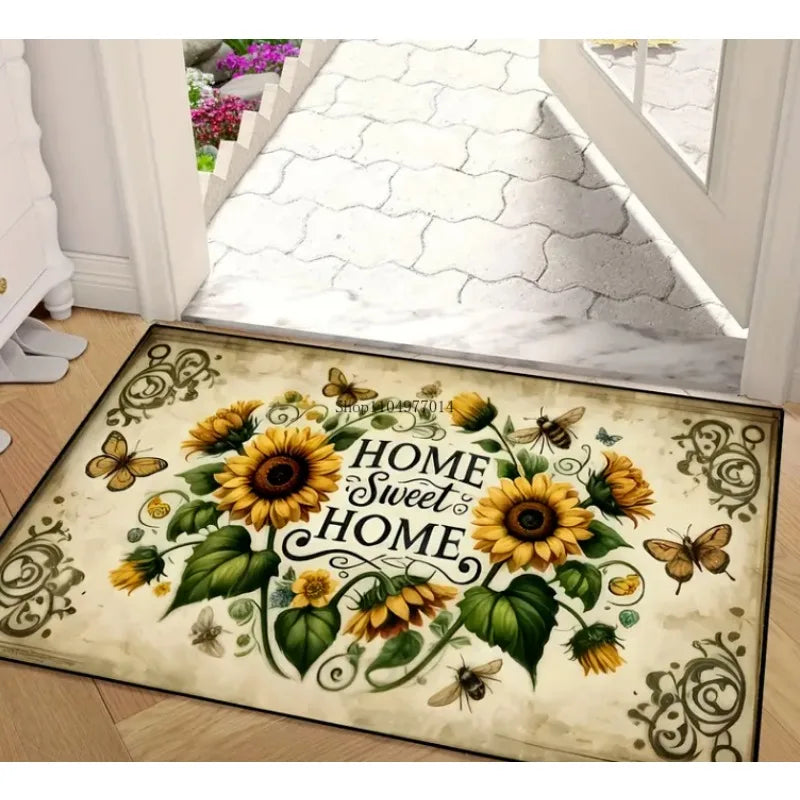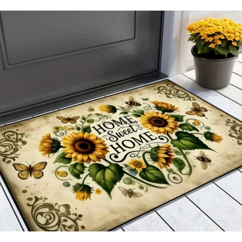 Sweet Home Welcome Mat – Sunflower Pattern, Non-Slip Indoor Floor Mat for Home Decoration