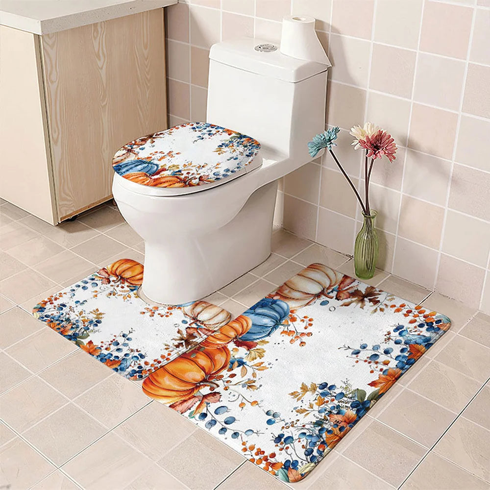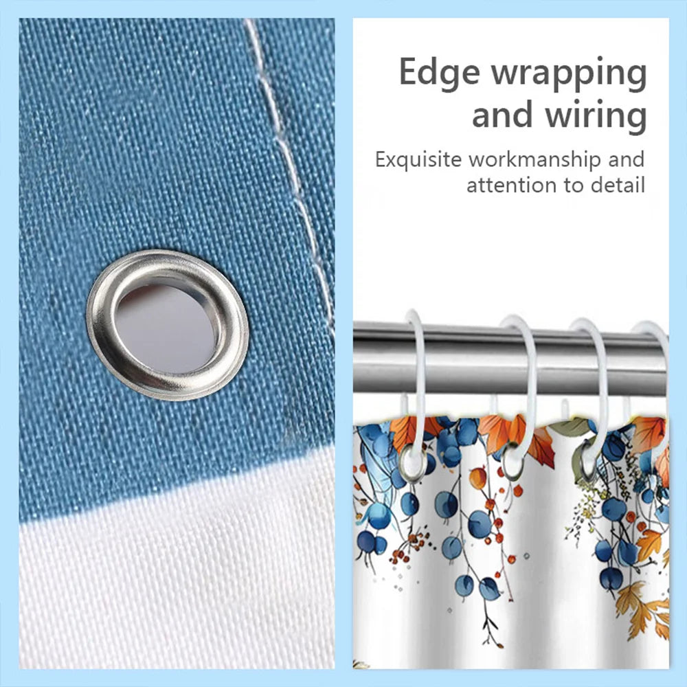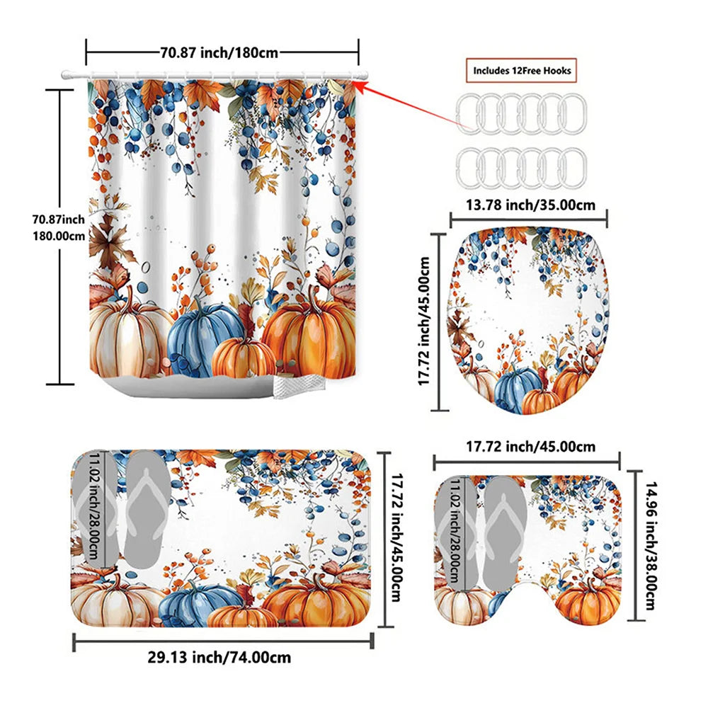 Made from high-quality waterproof polyester, the shower curtain resists moisture while providing vivid seasonal prints. The set includes a matching bath mat, U-shaped toilet rug, and a lid cover, all with non-slip backing for added safety. Included 12 hooks make installation quick and easy, so you can focus on relaxing in your fall-inspired haven.