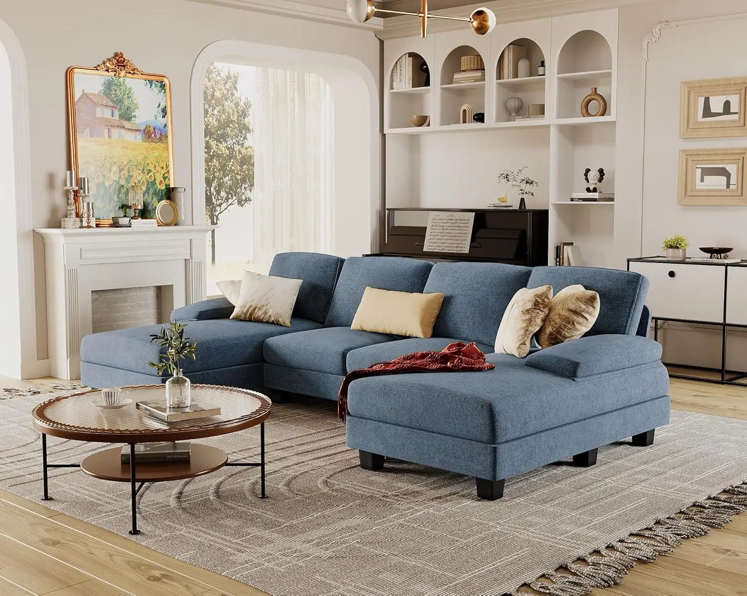 Product Name: U-Shaped 4-Seat and Double Chaise Sofa Couch with Linen Fabric – Spacious Comfort Meets Modern Elegance
