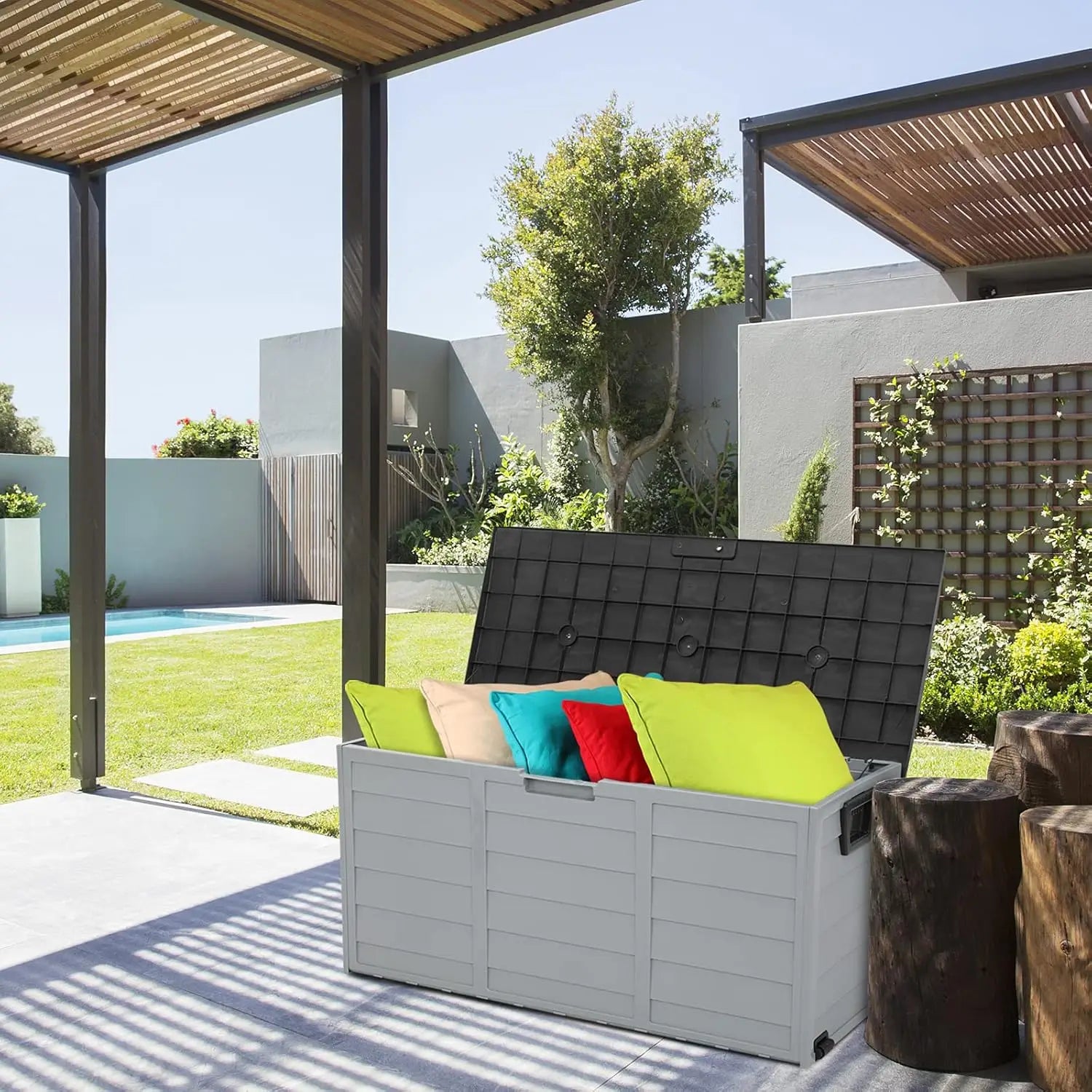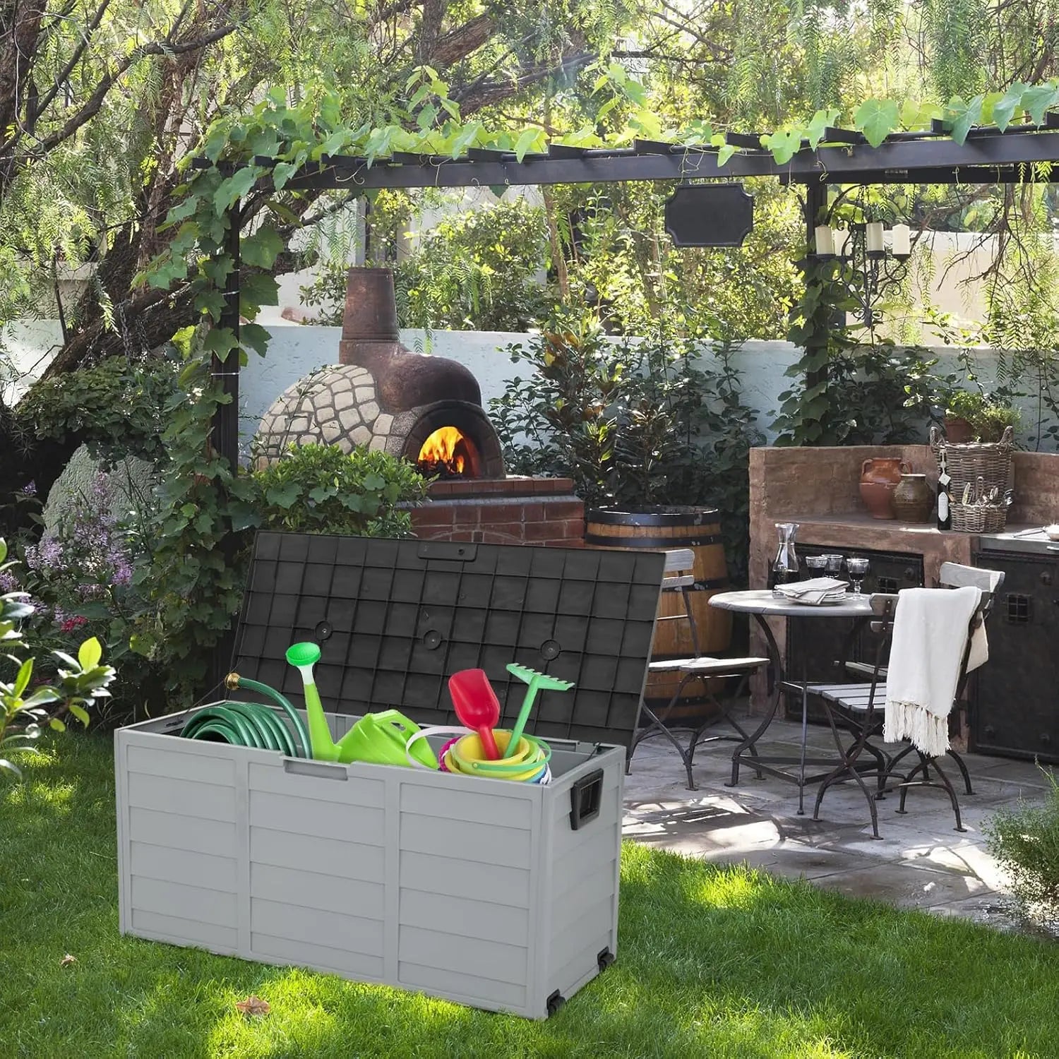 With ample storage space, this deck box easily holds a variety of outdoor essentials, helping you maintain a neat and tidy yard or patio.