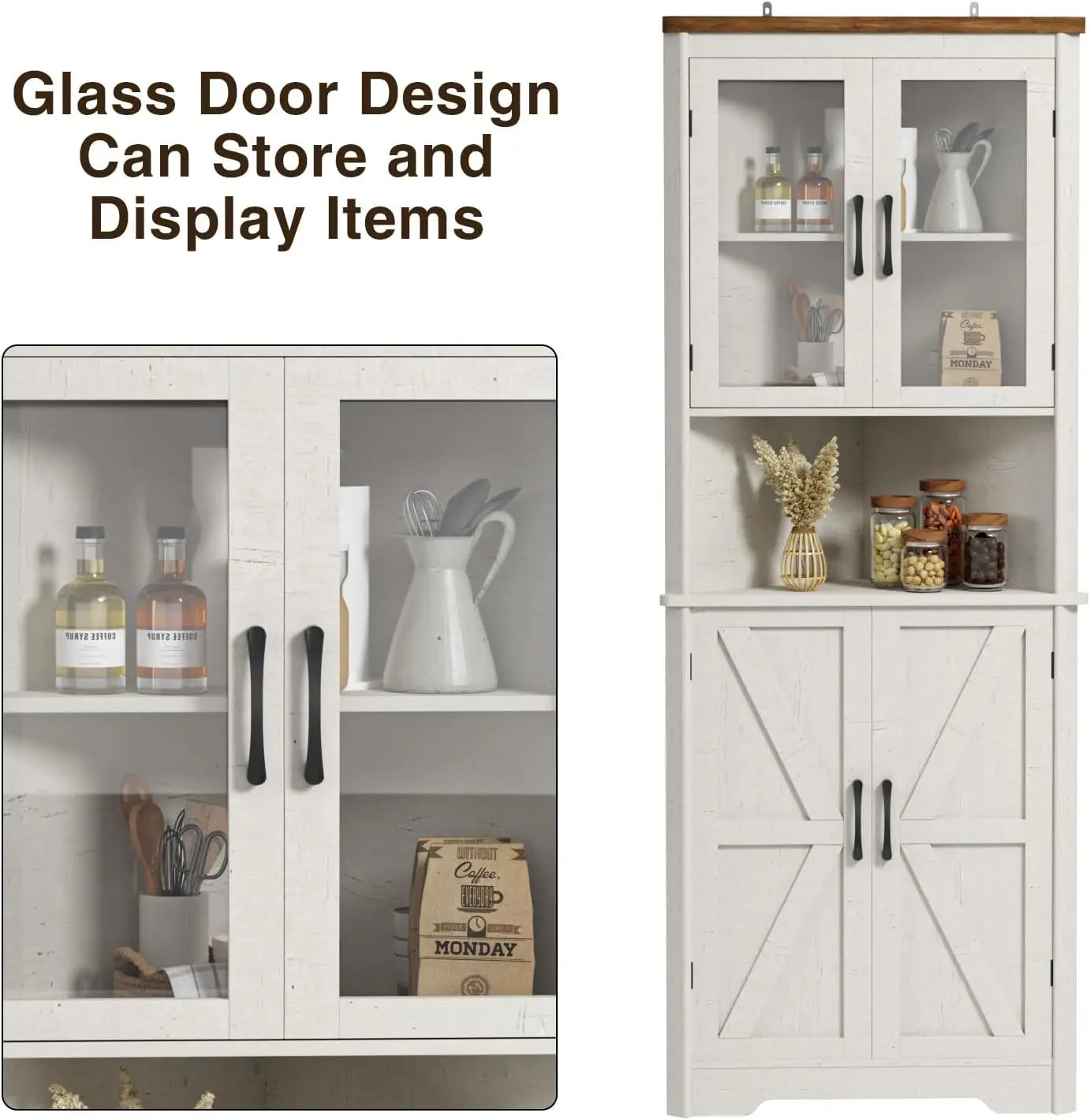 Maximize unused space with the Vabches 67’’ Tall Corner Cabinet, a stylish and practical storage solution designed to fit perfectly into any corner of your home. With its classic farmhouse charm, this 5-tier cabinet offers ample storage behind closed doors while keeping your room neat, tidy, and beautifully styled.