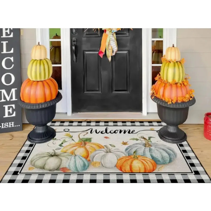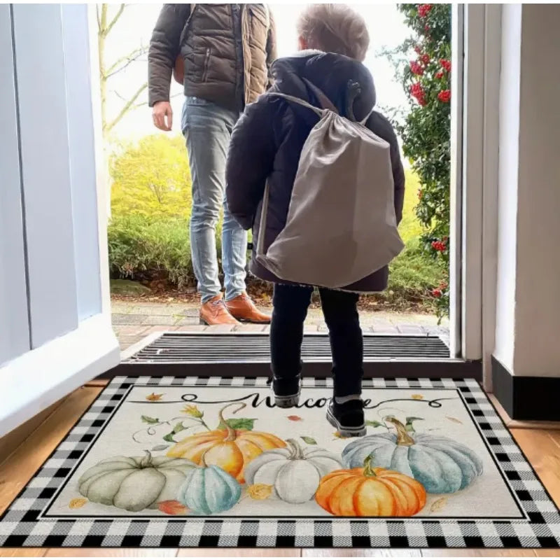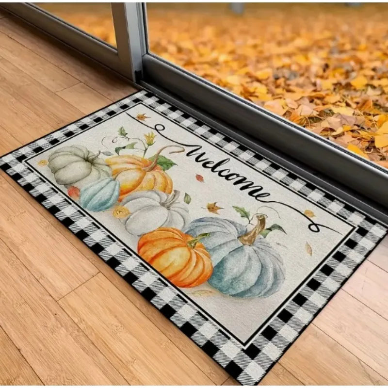 Greet the season in style with our Welcome Fall Doormat, the perfect touch of autumn charm for your home. Rug measures 30 inches (L) x 18 inches (W), 24 inches (L) x 16 inches (W) and is perfect for any entryway. Designed for both indoor and outdoor use, this cozy area rug brings warmth and personality to your entryway, porch, kitchen, or hallway. Made from high-quality flannel with a durable non-slip backing, it stays securely in place while offering a soft surface underfoot. Featuring seasonal motifs like falling leaves, pumpkins, and rustic lettering, this mat instantly transforms your space into a fall-themed haven. Easy to clean and machine washable, it's the ideal piece to celebrate harvest season while keeping dirt and moisture off your floors. Whether you're hosting Thanksgiving or just love the crisp vibes of autumn, this floor mat makes your home feel warm, festive, and inviting.