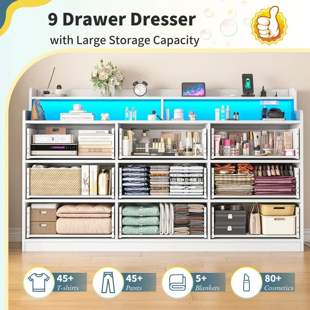 Product Name: Wooden 9-Drawer Dresser for Bedroom with LED Light – Spacious Storage with a Modern Glow