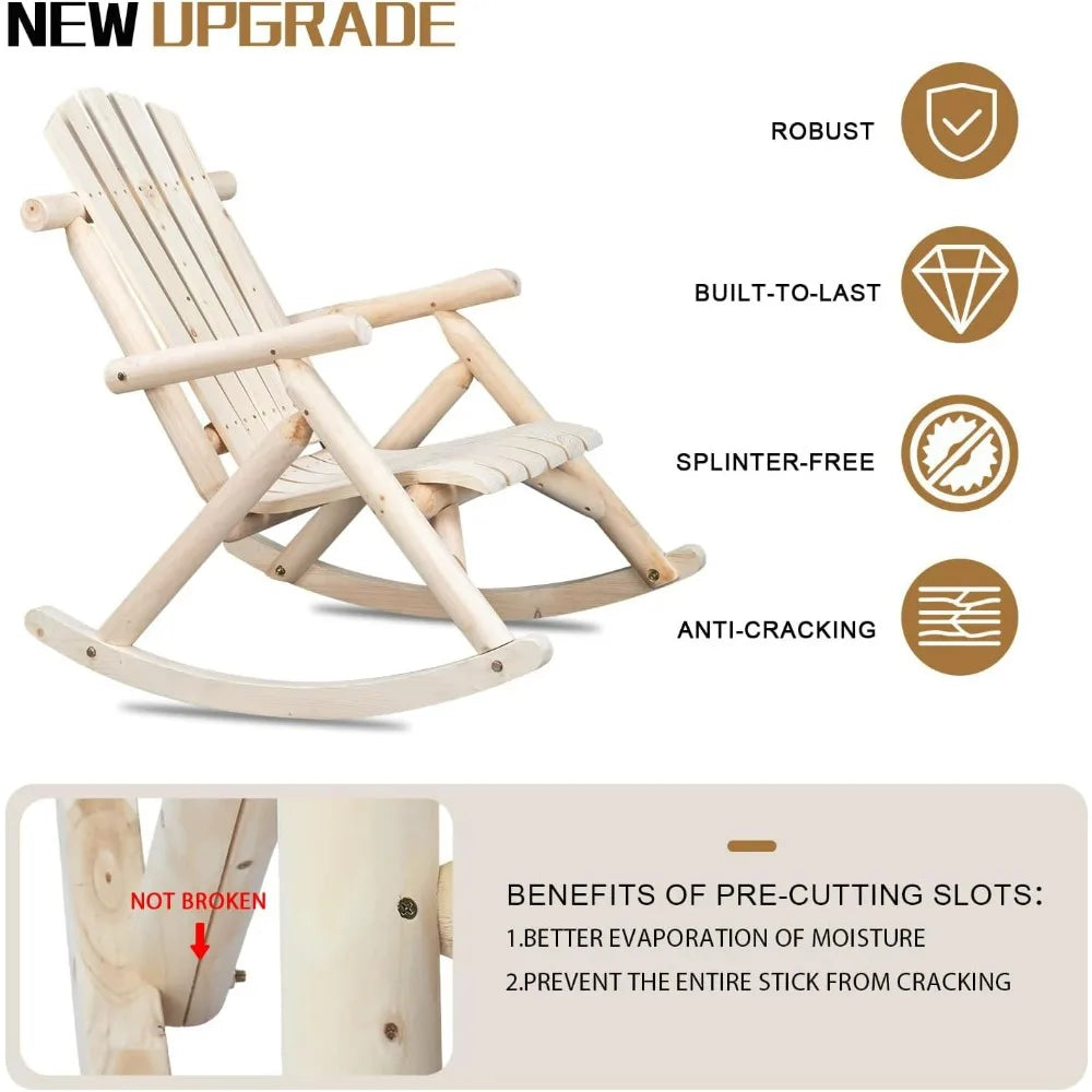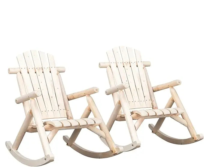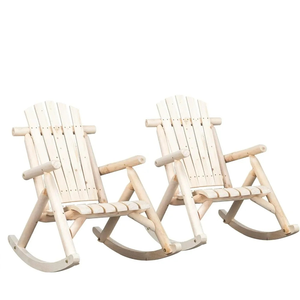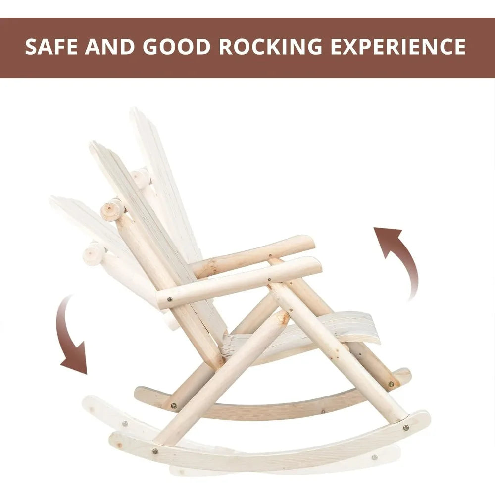 Wooden Rocking Chair Set of 2 – Fir Log Adirondack Rockers, Outdoor Wood Lounge Chairs for Garden, Patio & Backyard